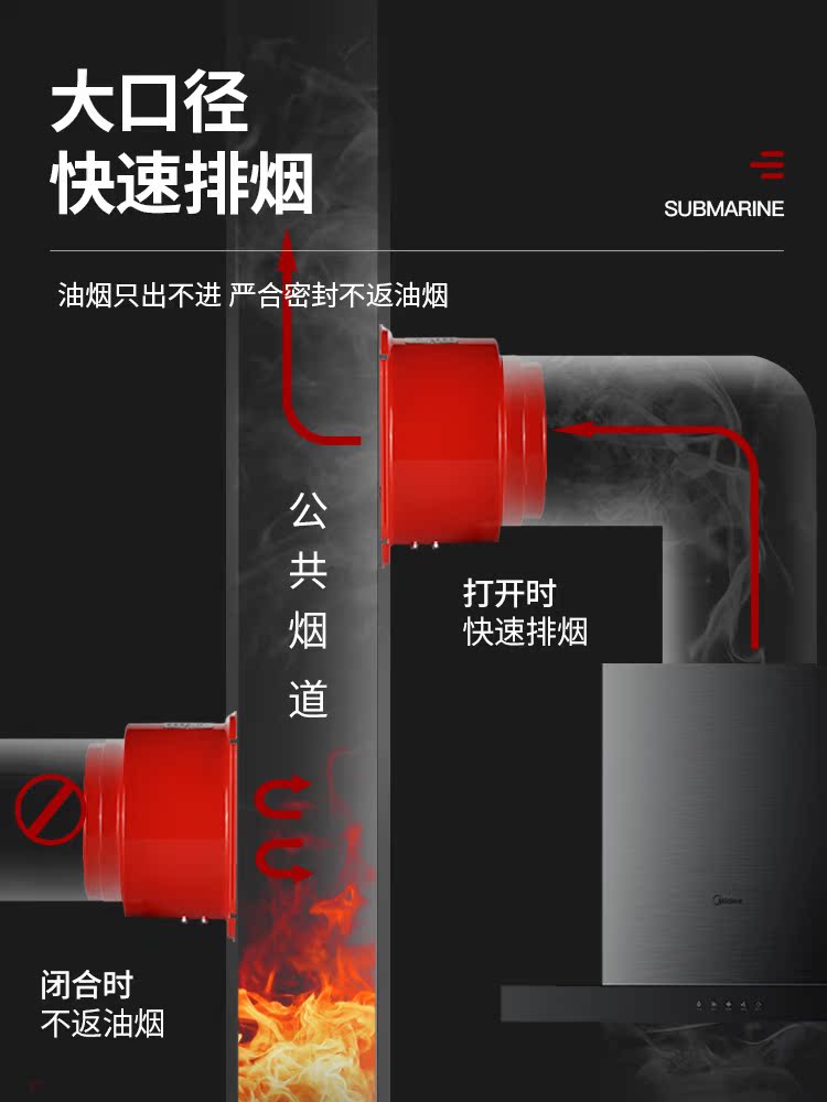 潜水艇厨房抽油烟机烟道止逆阀专用单向阀防火止回阀高楼层防烟宝