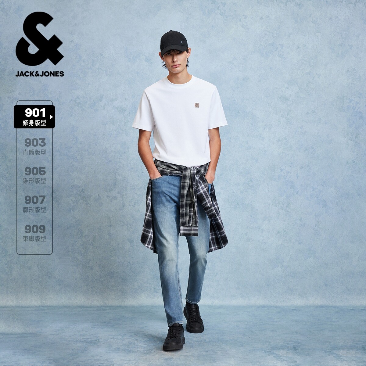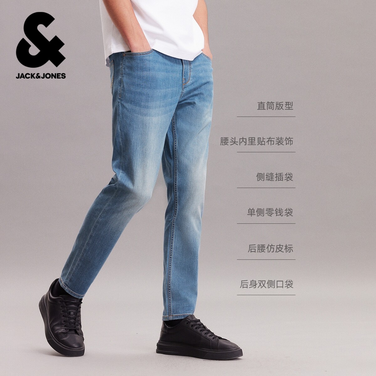[弹力]901杰克琼斯春季男装修身牛仔裤美式水洗复古蓝长裤子男款