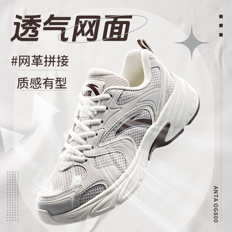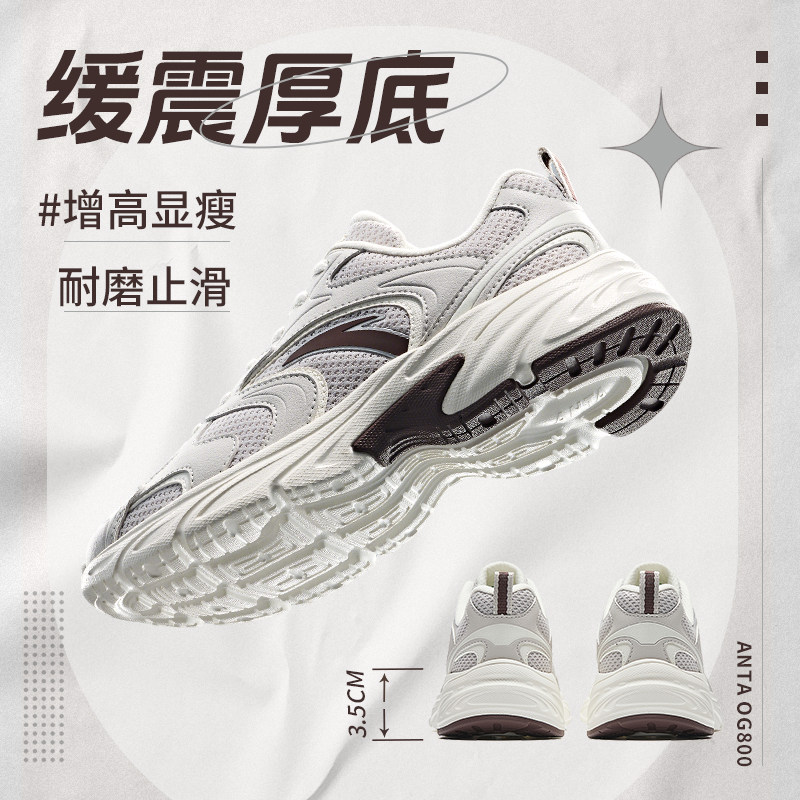 安踏OG800复古休闲鞋女鞋2025新款缓震增高轻便跑步鞋时尚运动鞋