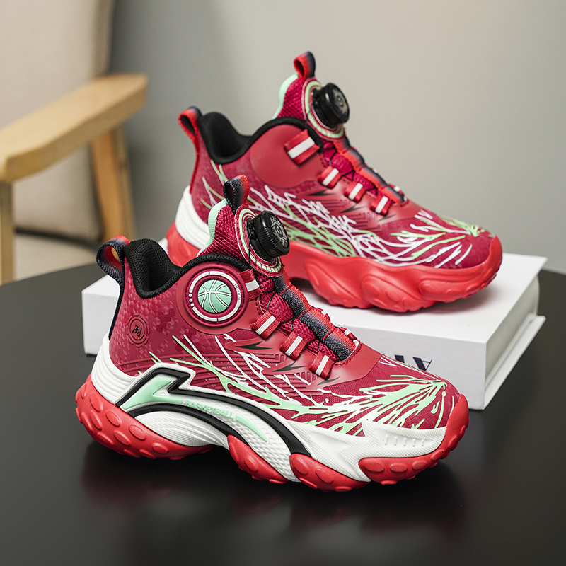 男童篮球鞋2025新款秋冬皮面旋转扣儿童鞋子防滑跑步鞋男孩运动鞋