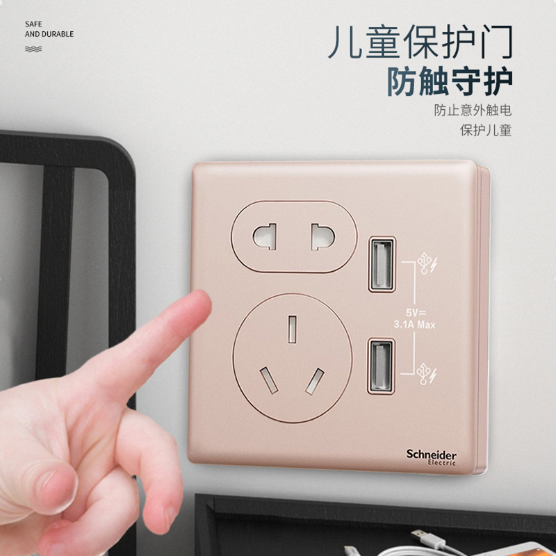 施耐德珍铂温莎金色金属开关插座五孔USB二三16A插座家用单开双控