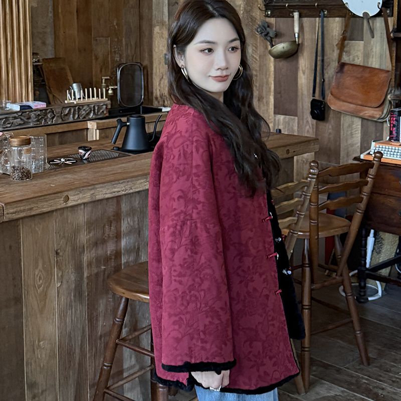 新中式美利奴皮毛一体外套女中长款国风两面穿羊羔毛真皮皮草大衣