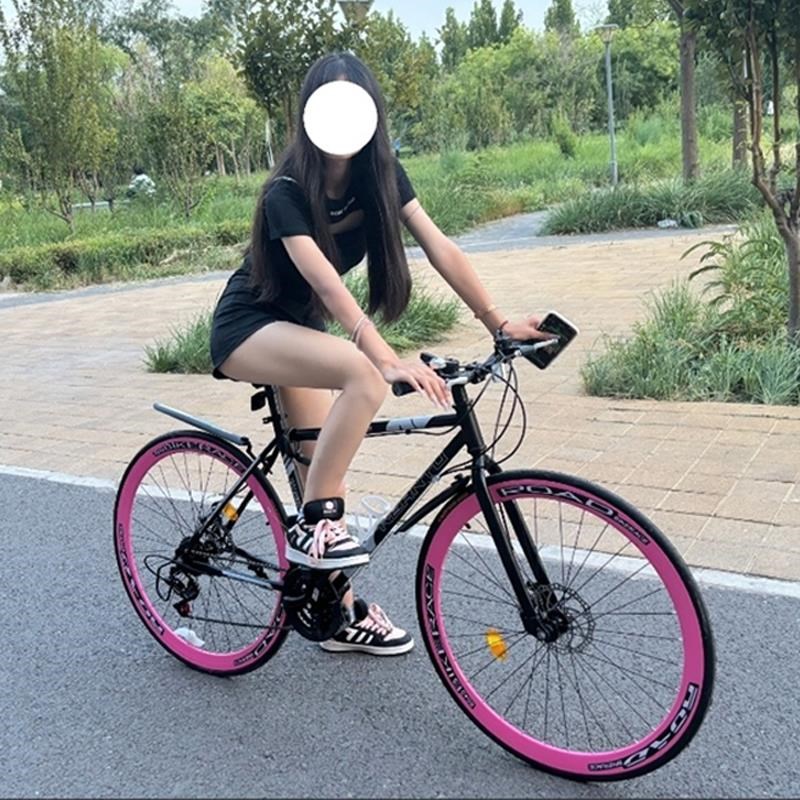 死飞自行车男女款网红公路赛车碟煞学生车26寸公路跑车Z实心胎活