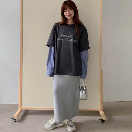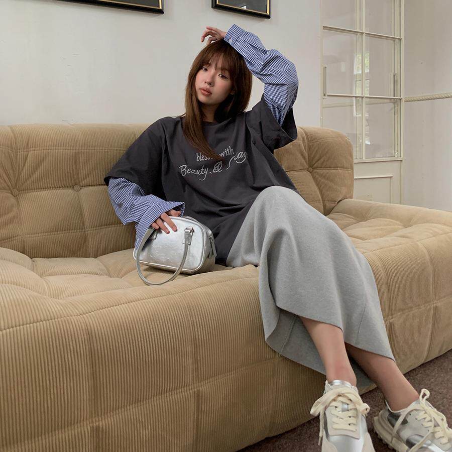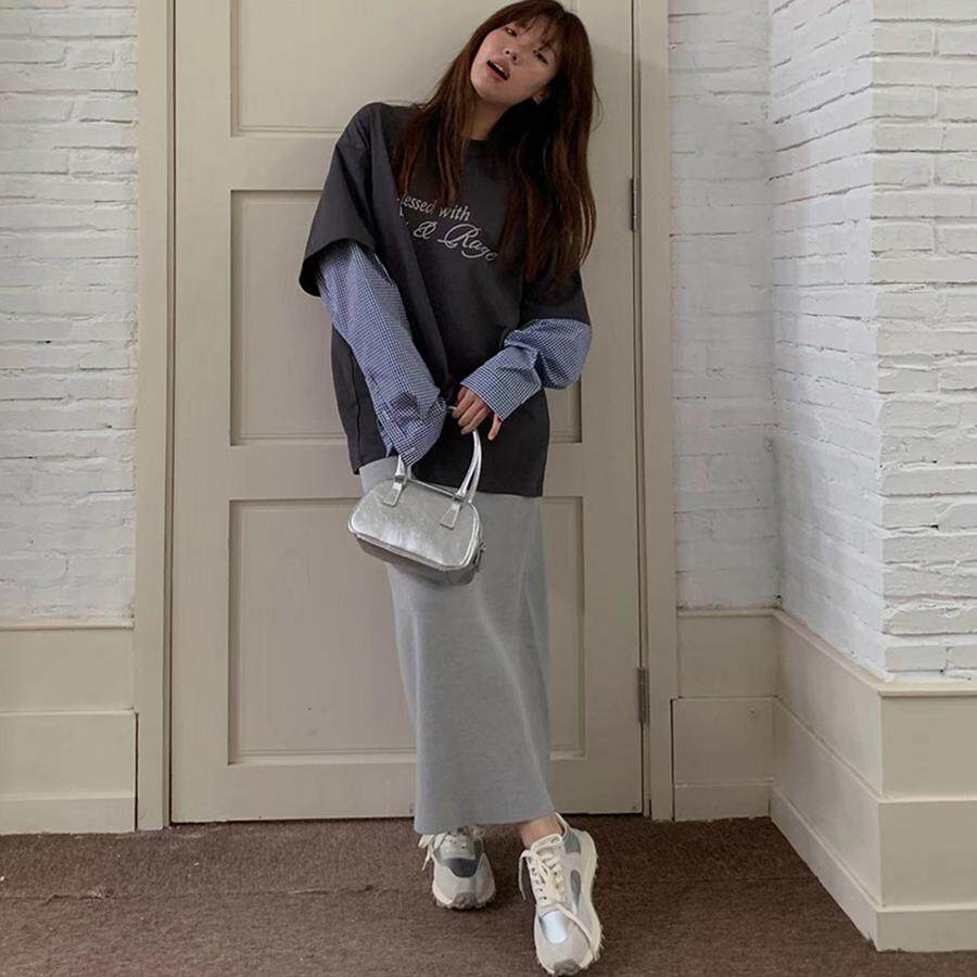 Deessesicile 慵懒进阶灰色高腰显瘦直筒针织长裙半身裙秋冬款女