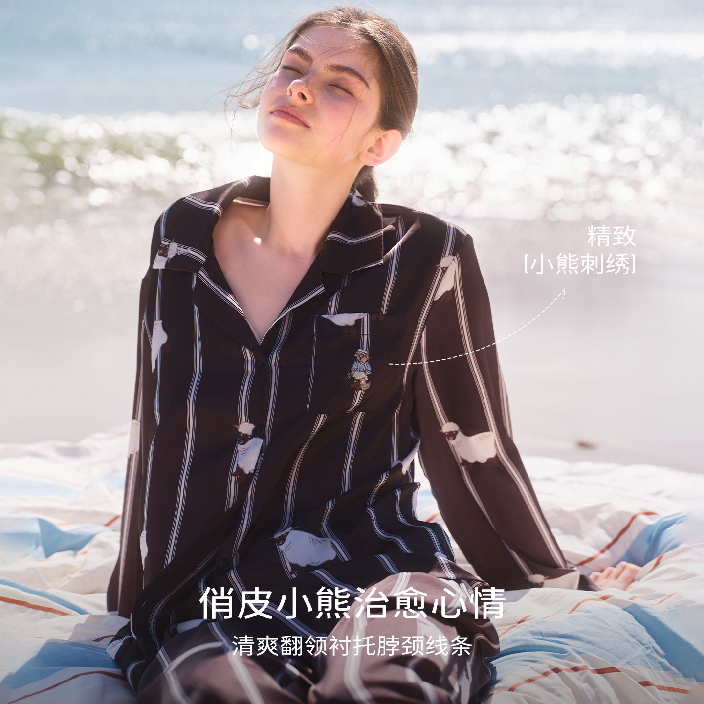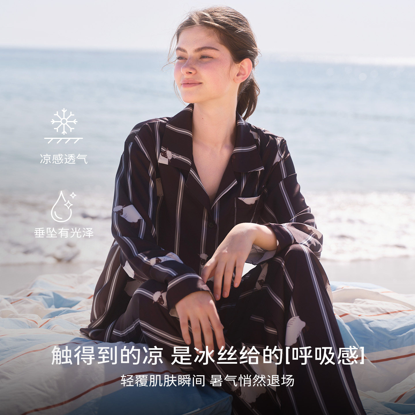 TeenieWeenie小熊冰丝睡衣女士2026新款春夏季凉感印花家居服套装
