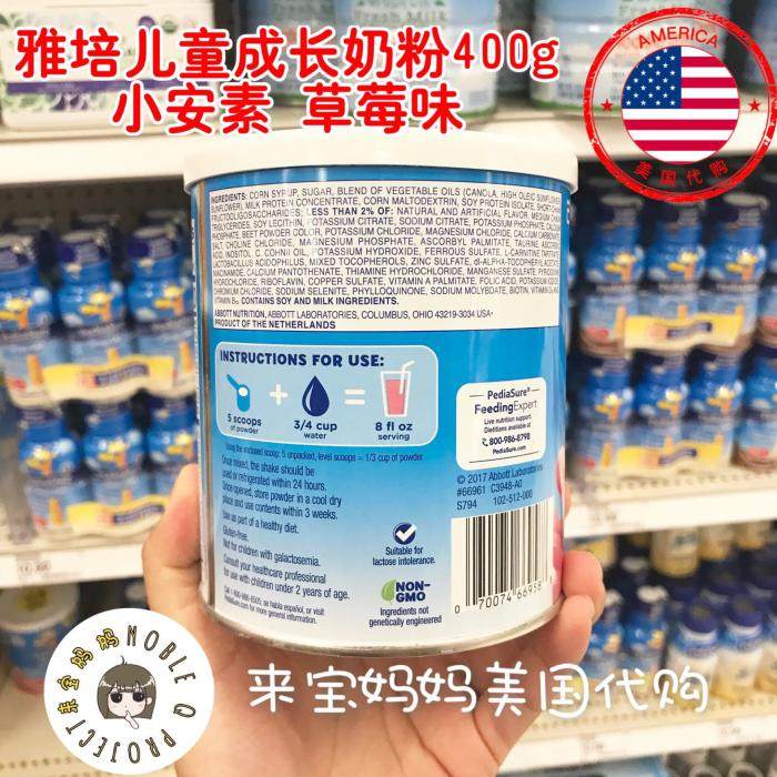 美国代购PediaSure 雅培小安素奶粉400g儿童成长营养奶粉草莓味