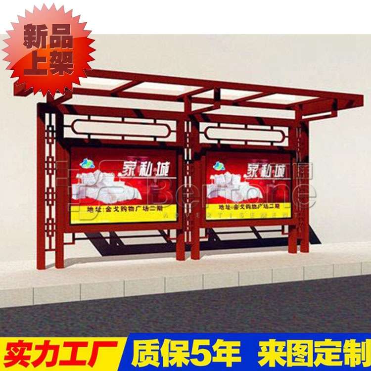 2021年新款智能不锈钢乡镇仿古公交候车亭站台广告宣传栏生产厂家