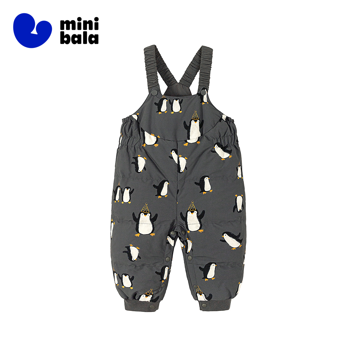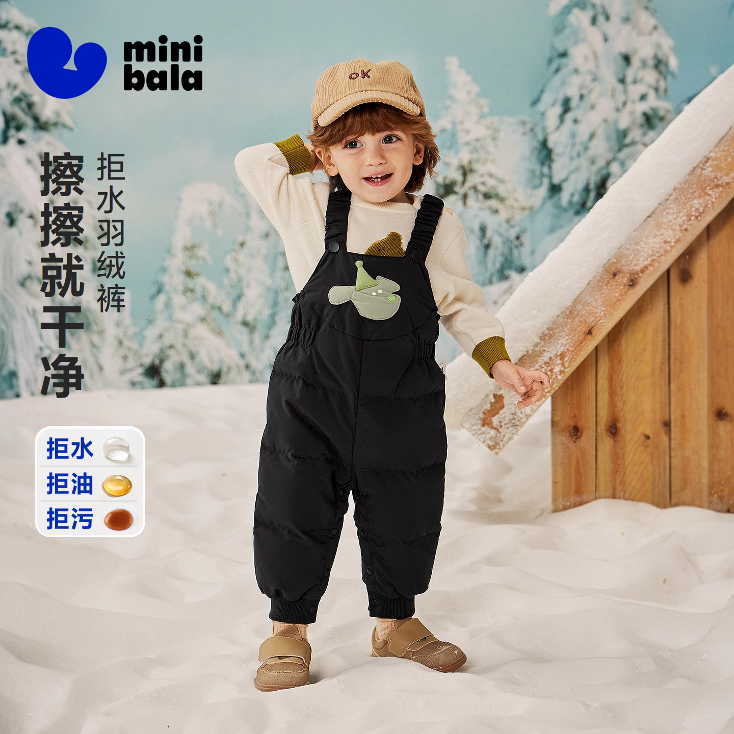 迷你巴拉巴拉男女童宝宝羽绒裤2025冬季儿童保暖加厚三防背带长裤