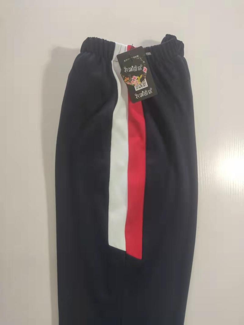 可定做中小学生男女校裤直筒裤拼接红白条宽杠松紧腰有兜长裤大码