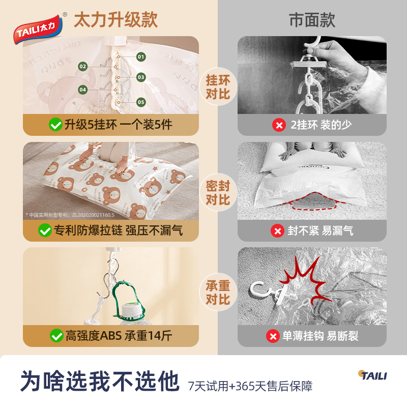 太力羽绒服抽真空压缩收纳袋挂式装衣服衣柜专用神器衣物整理袋子