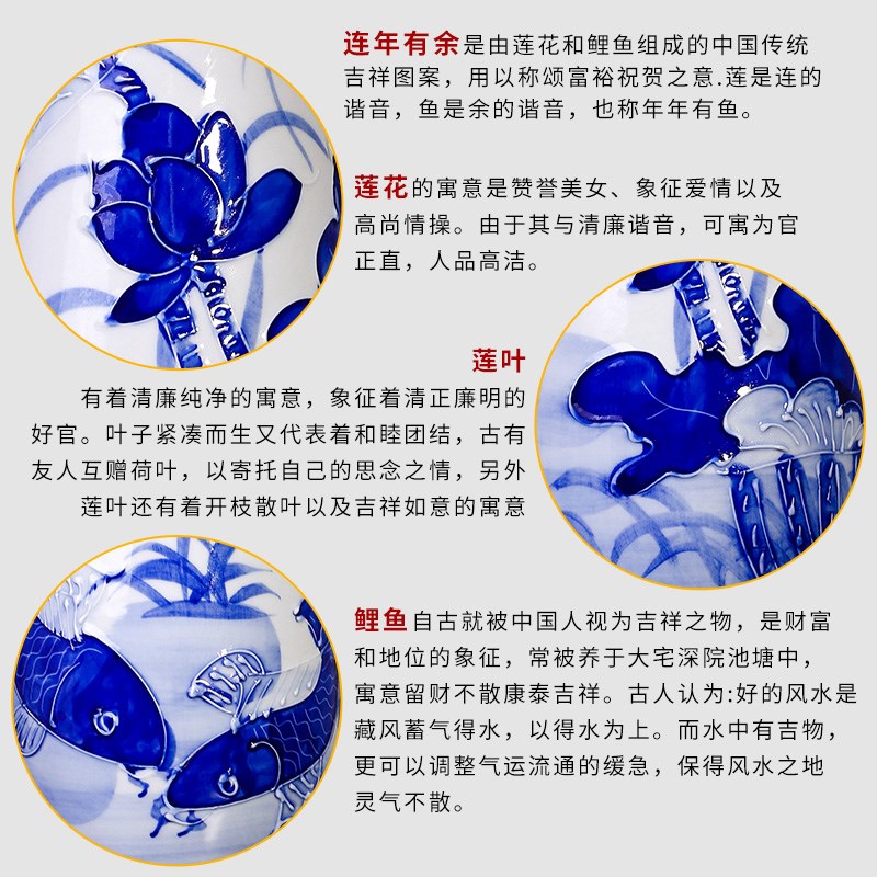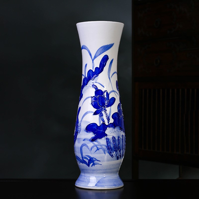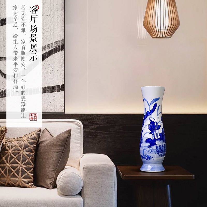 景德镇手绘青花瓷富贵竹花瓶中式大号花瓶客厅陶瓷摆件插花大口径