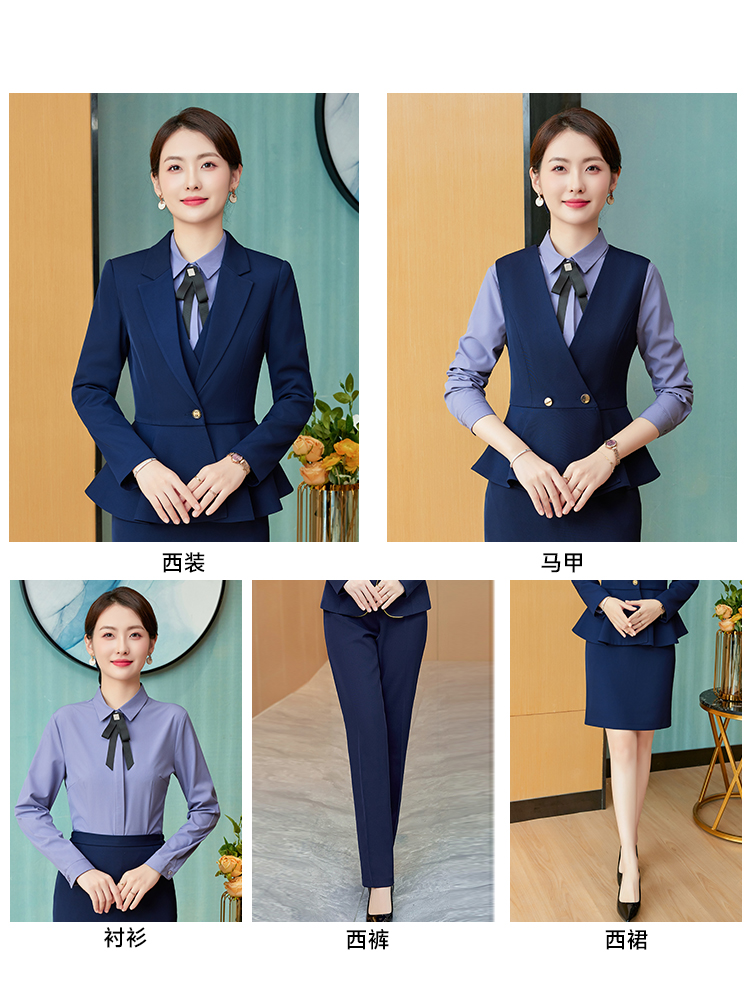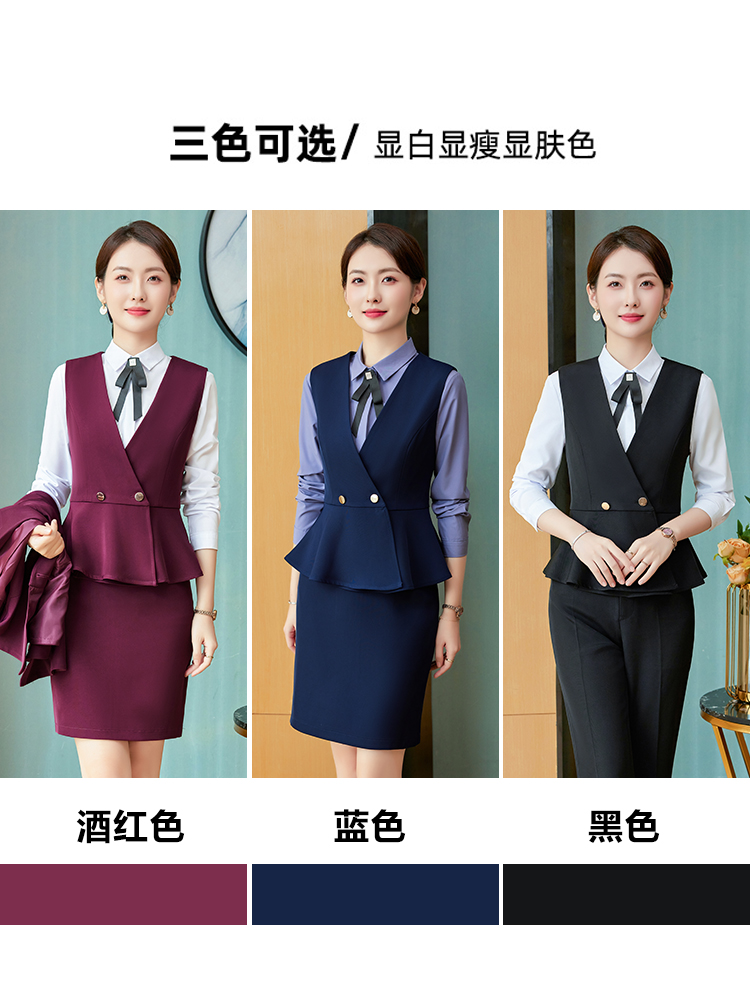 工作服职业气质女秋冬天西装套装高端前台接待会务美容院马甲正装