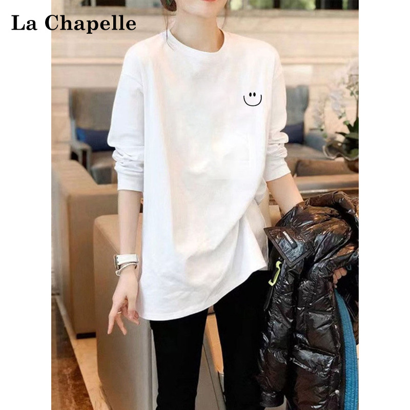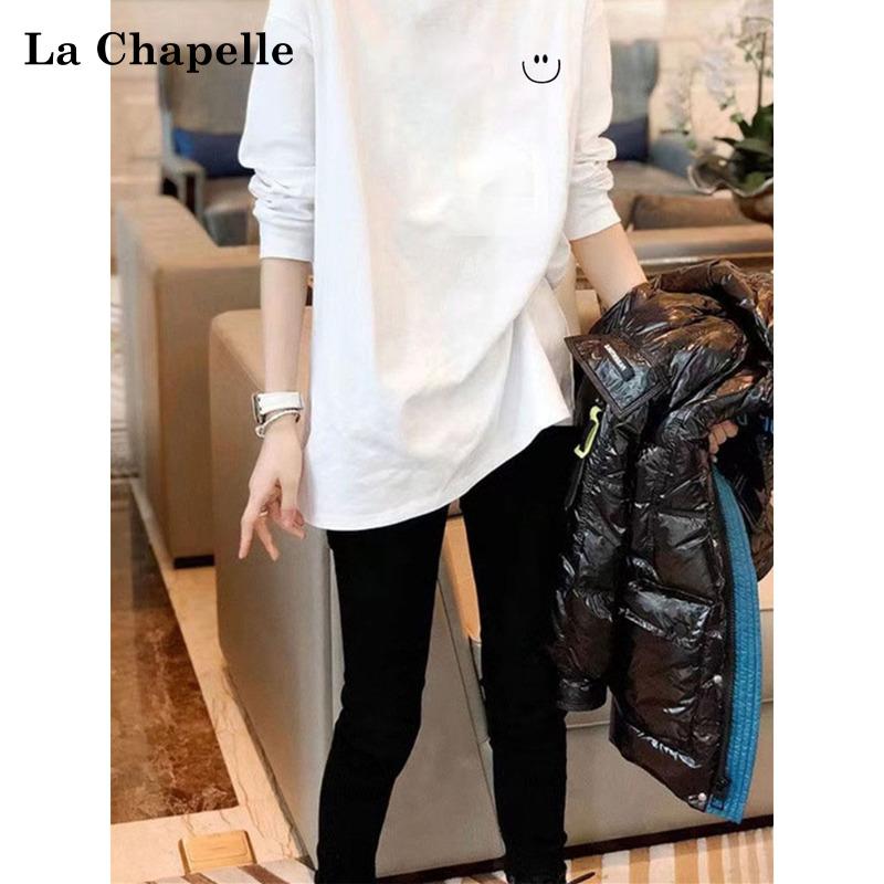 拉夏贝尔加绒圆领白色打底衫女秋冬叠穿中长款卫衣配鲨鱼裤的上衣