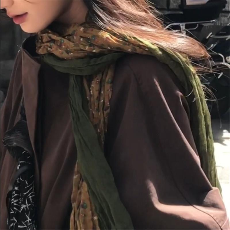 文艺棉麻点缀围巾女2025新款丝巾秋冬季氛围感正流行系脖亚麻披肩