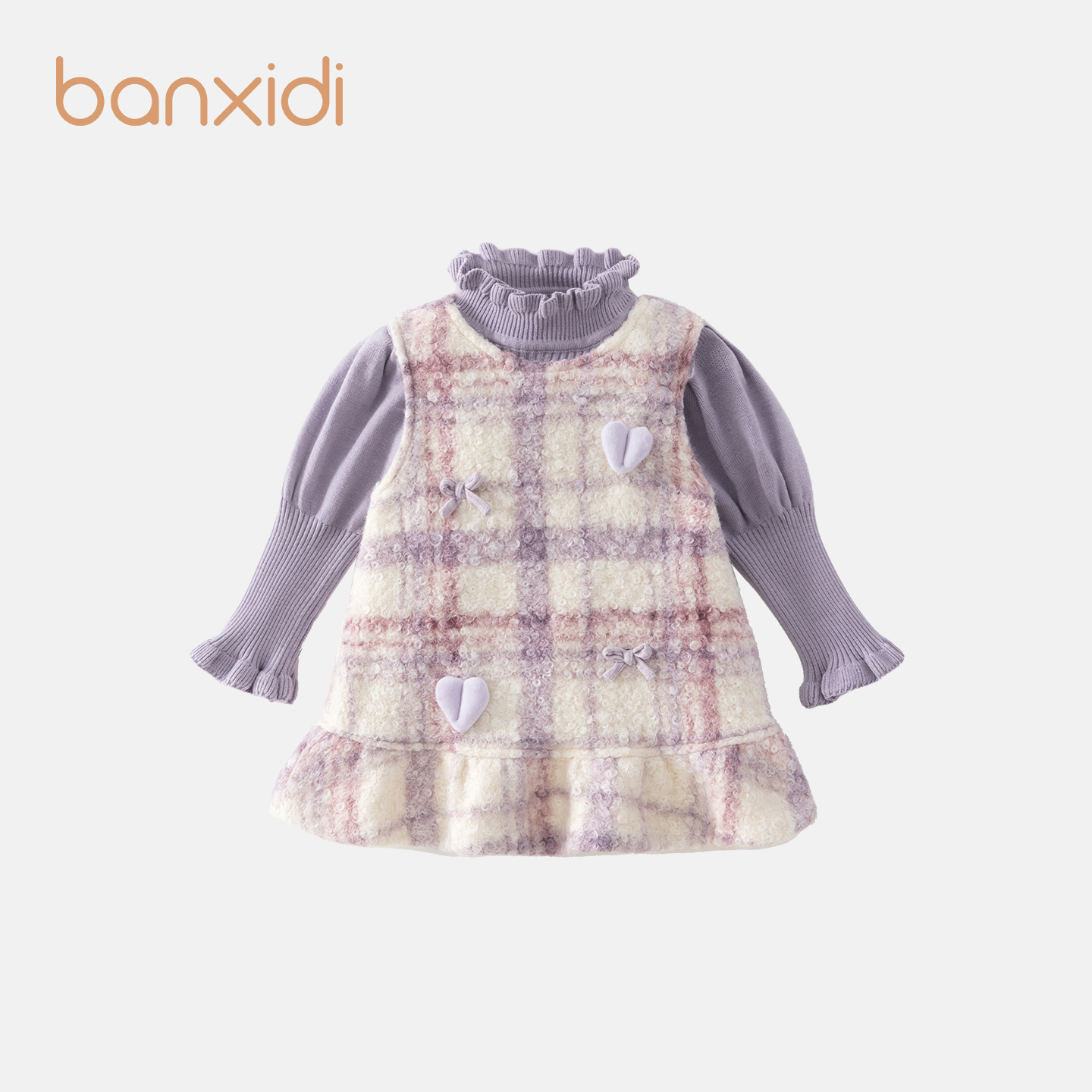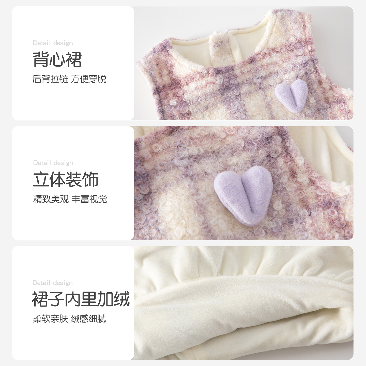 Banxidi女童连衣裙冬装新款洋气儿童公主裙子冬季宝宝加绒背心裙