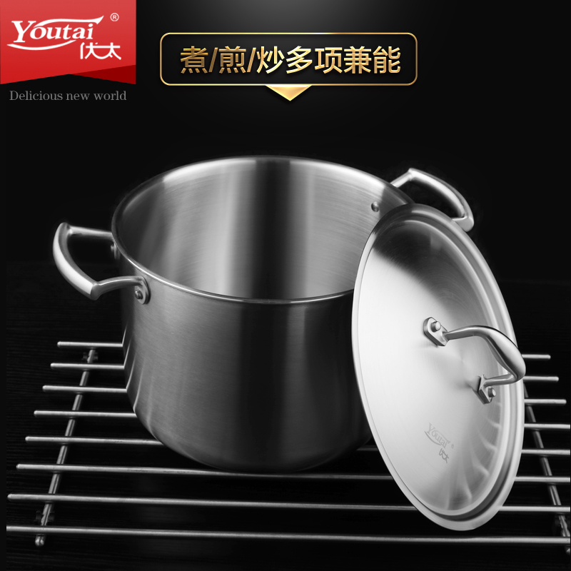 优太汤锅304不锈钢18/10加厚加深家用双耳煮锅电磁炉燃气灶通用