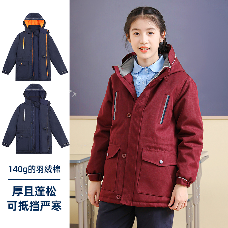 中小学生校服棉袄男女童冲锋衣冬款儿童中长款棉衣保暖加厚款羽绒