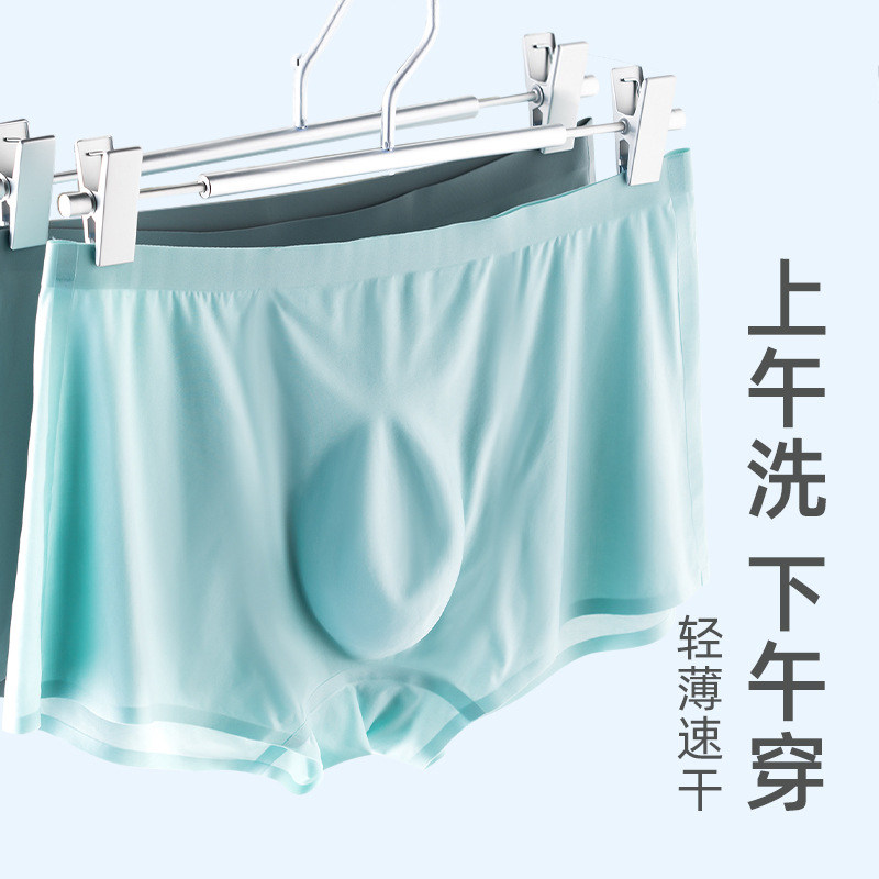 2条装 雷帝高高冰丝男士内裤无痕透气超薄款裸睡透明凉感四角裤头