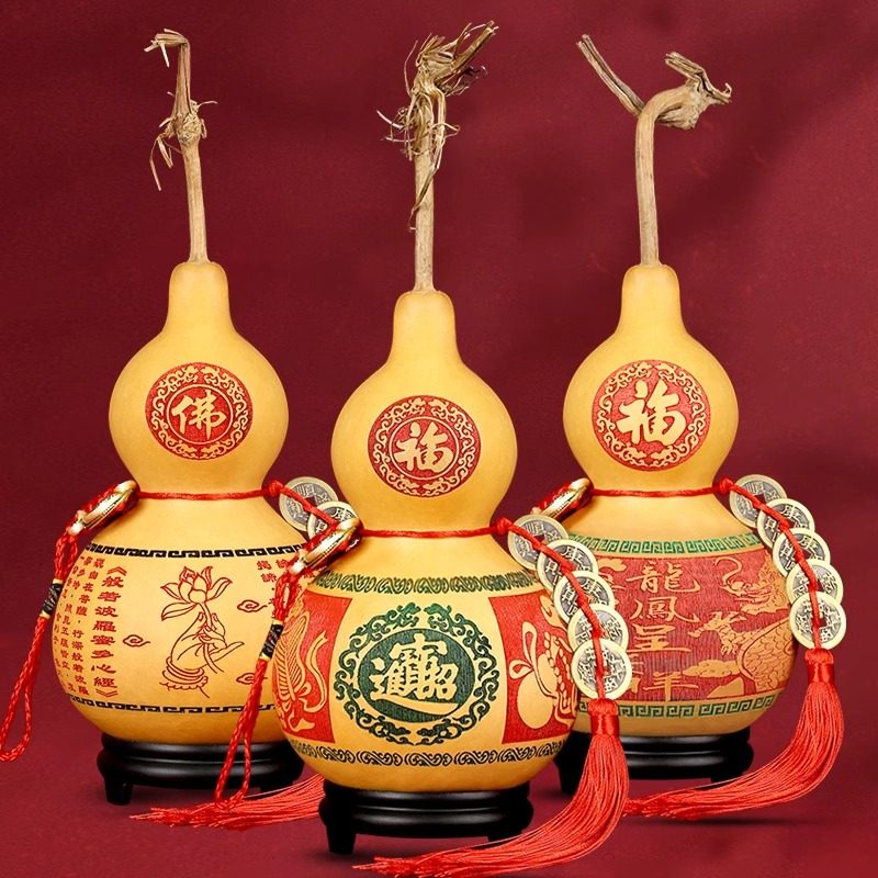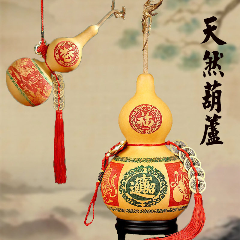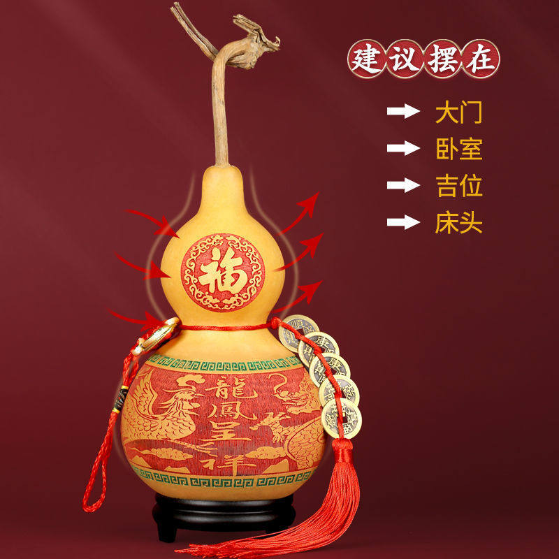 葫芦摆件天然特大葫芦五福带龙头门对门五帝钱玄关客厅真葫芦挂件