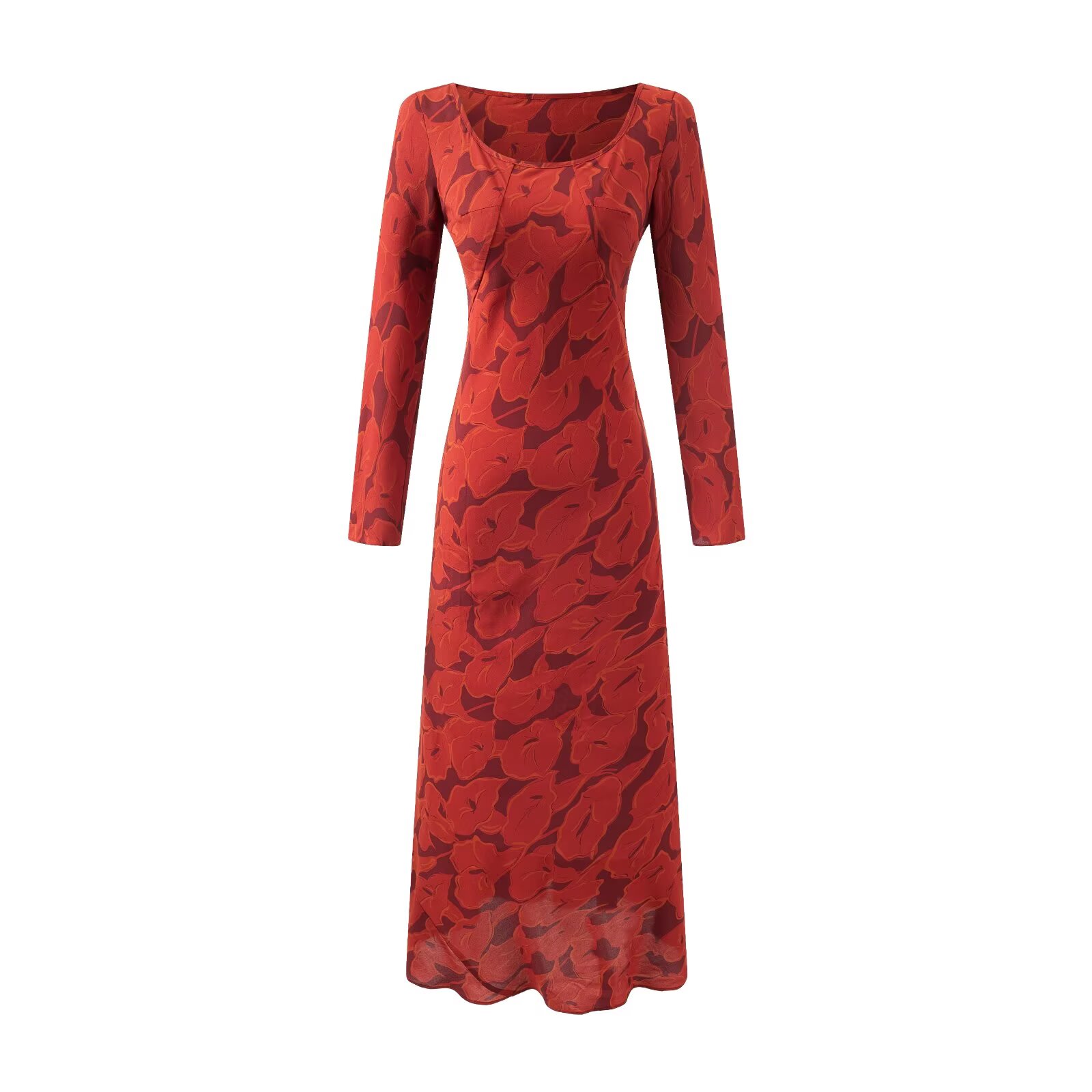 法式纯色圆领网纱连衣裙女2025新款显瘦长袖收腰女士度假裹身裙