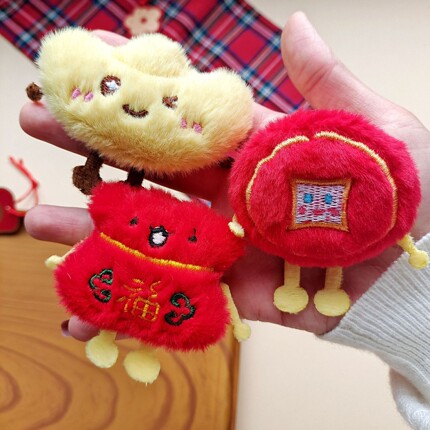 窗帘小装饰毛绒元宝铜钱招财布艺别针包包红色喜庆新年福袋胸针