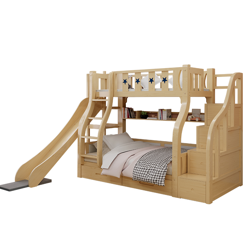 实木上下床双层床两层高低床双人床上下铺滑梯床家用儿童床子母床