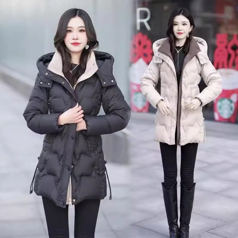 修身羽绒棉服女2025新款冬季时尚气质收腰中长款洋气保暖外套免洗