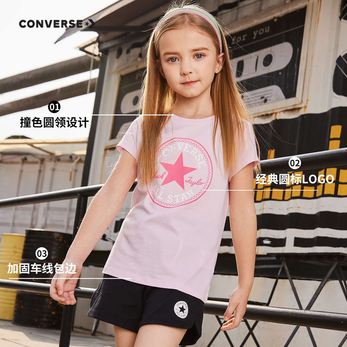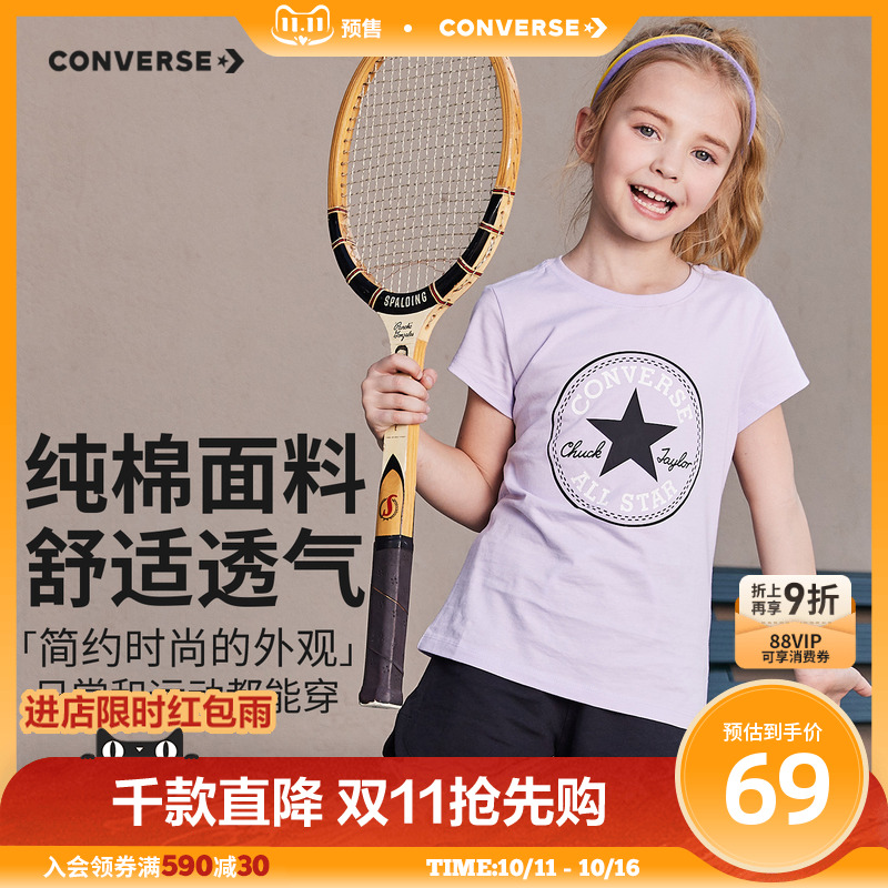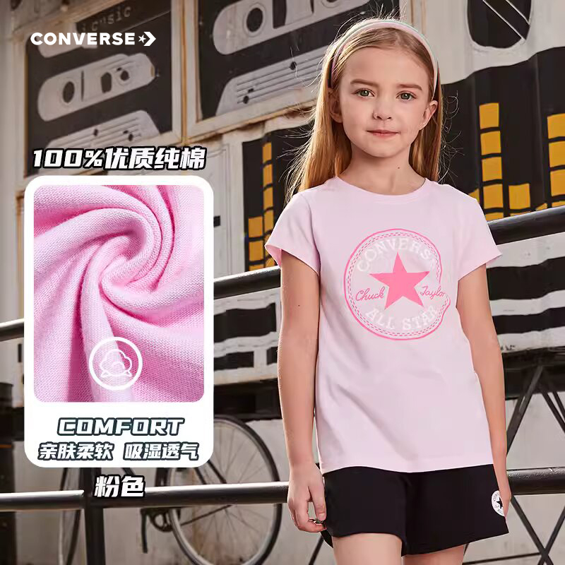 匡威儿童装女2024夏季新款女童中大童纯棉透气短袖运动休闲T恤潮t