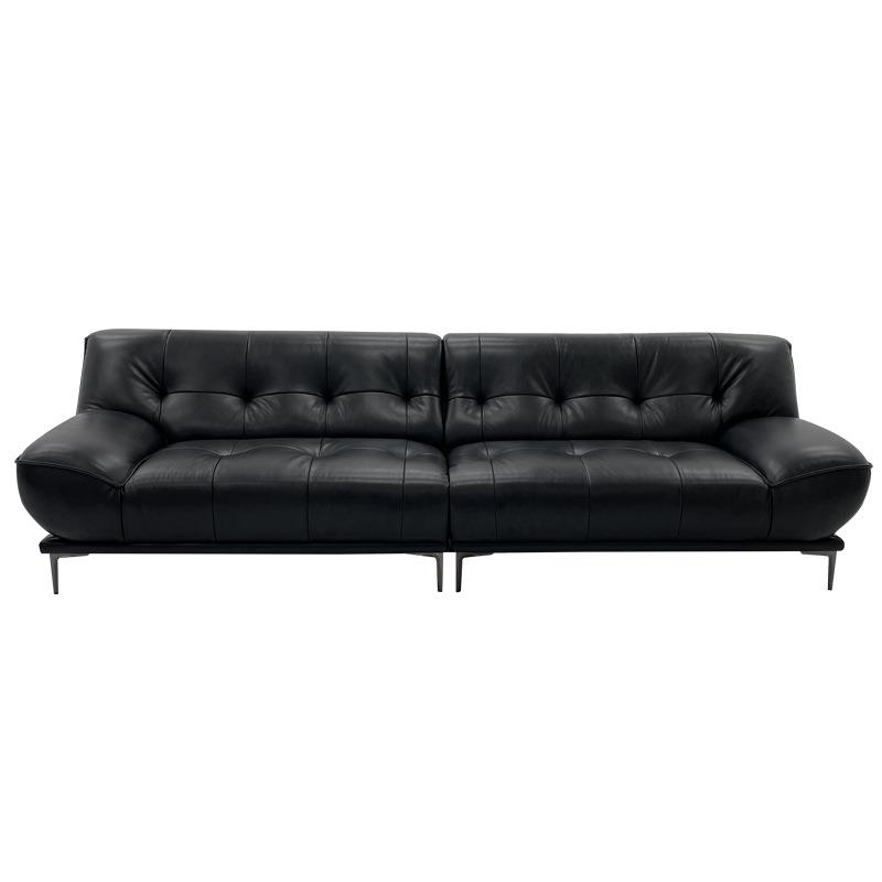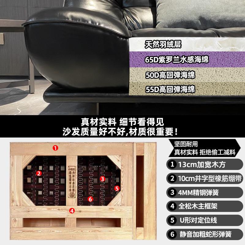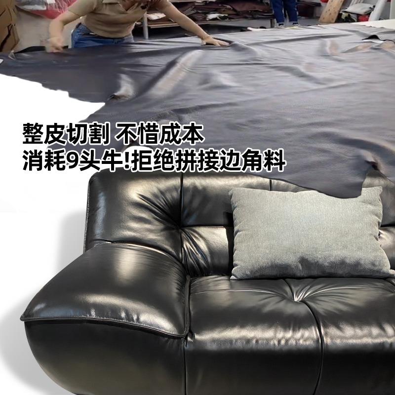 真皮沙发客厅法式复古意式小户型现代极简中古头层牛皮黑色皮沙发