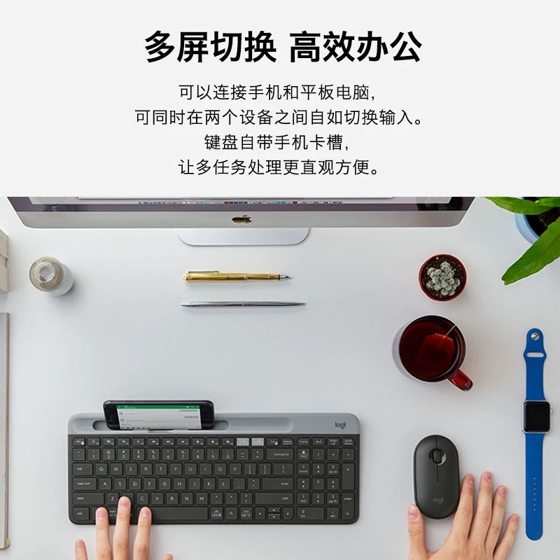 罗技 K580 无线蓝牙双模键盘办公平板ipad笔记本轻音女生键鼠套装