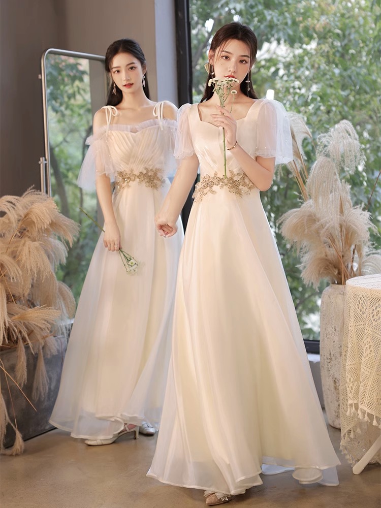 香槟色伴娘服气质长款显瘦