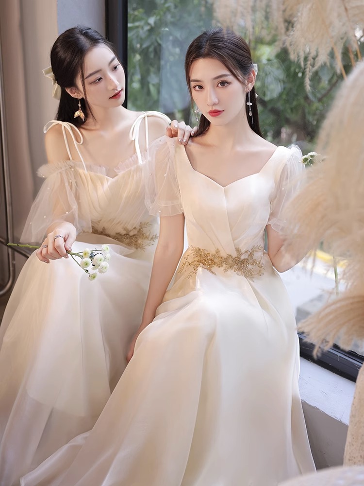香槟色伴娘服气质长款显瘦姐妹团高级晚礼服裙女2024新款夏季礼服