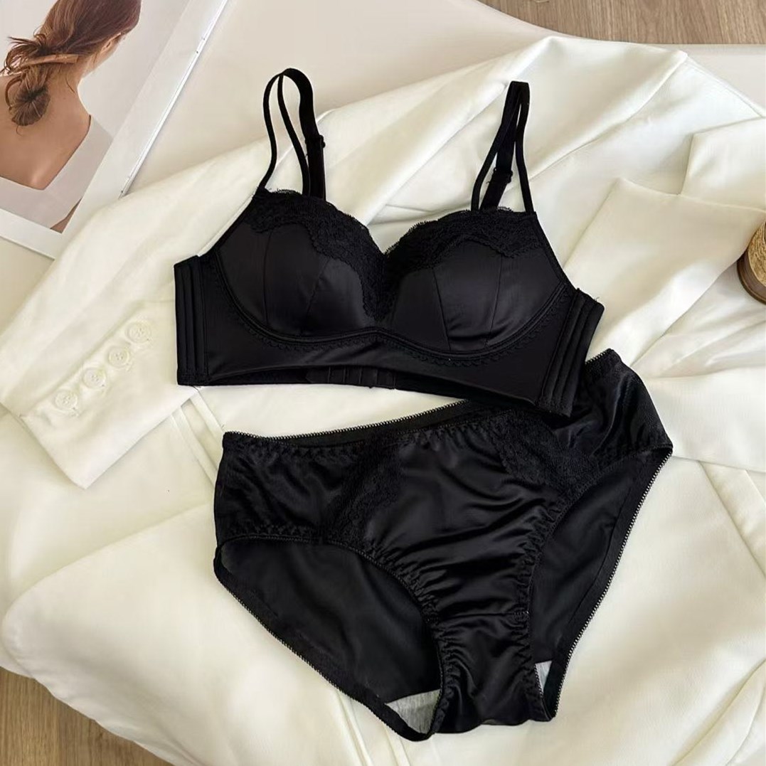 性感缎面蕾丝轻奢内衣女小胸聚拢平胸显大收副乳防下垂纯欲文胸罩