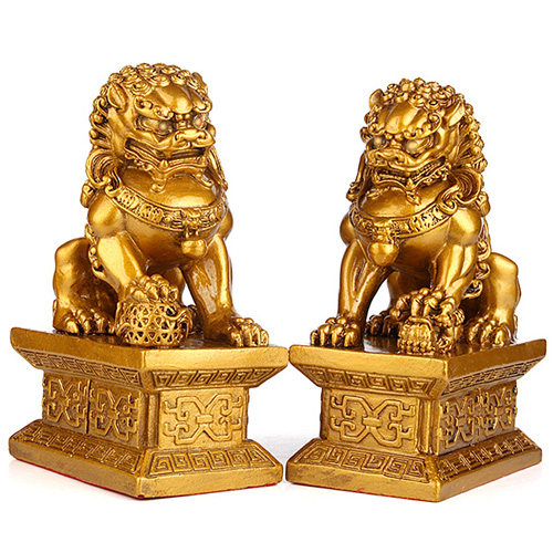 精工仿纯铜狮子摆件工艺礼品大号风水一对镇宅招财仿纯铜狮子装饰