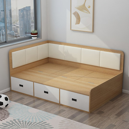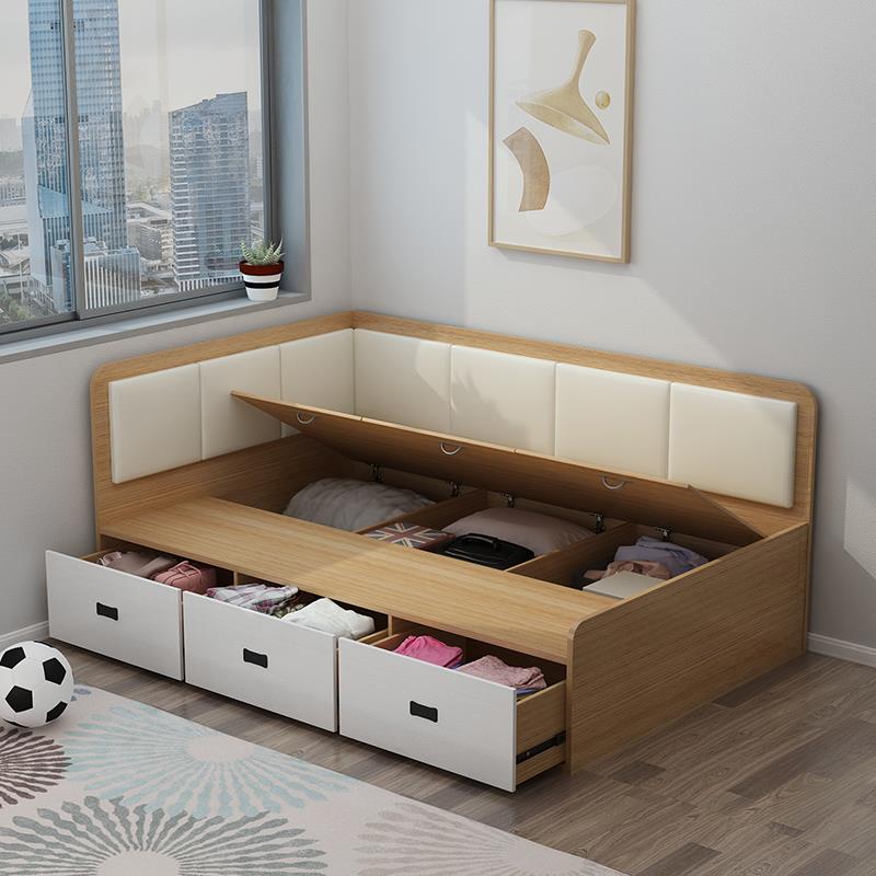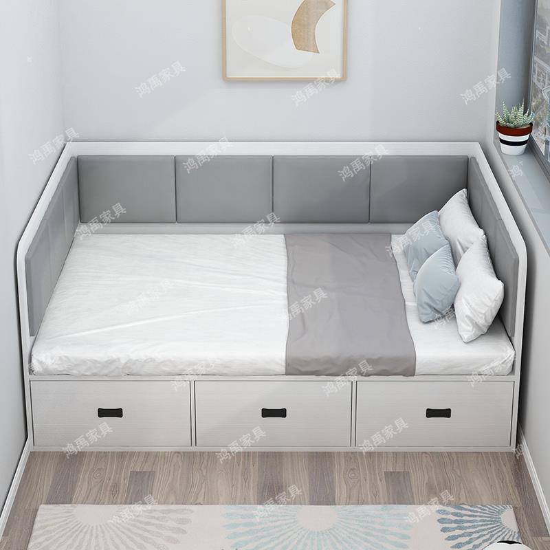 儿童高箱储物收纳床飘窗落地1m小空间床1.2米带围栏榻榻米床定制