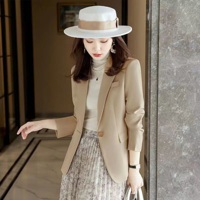 休闲黑色西装外套女春秋季款时尚洋气修身垂感高档小个子西服上衣
