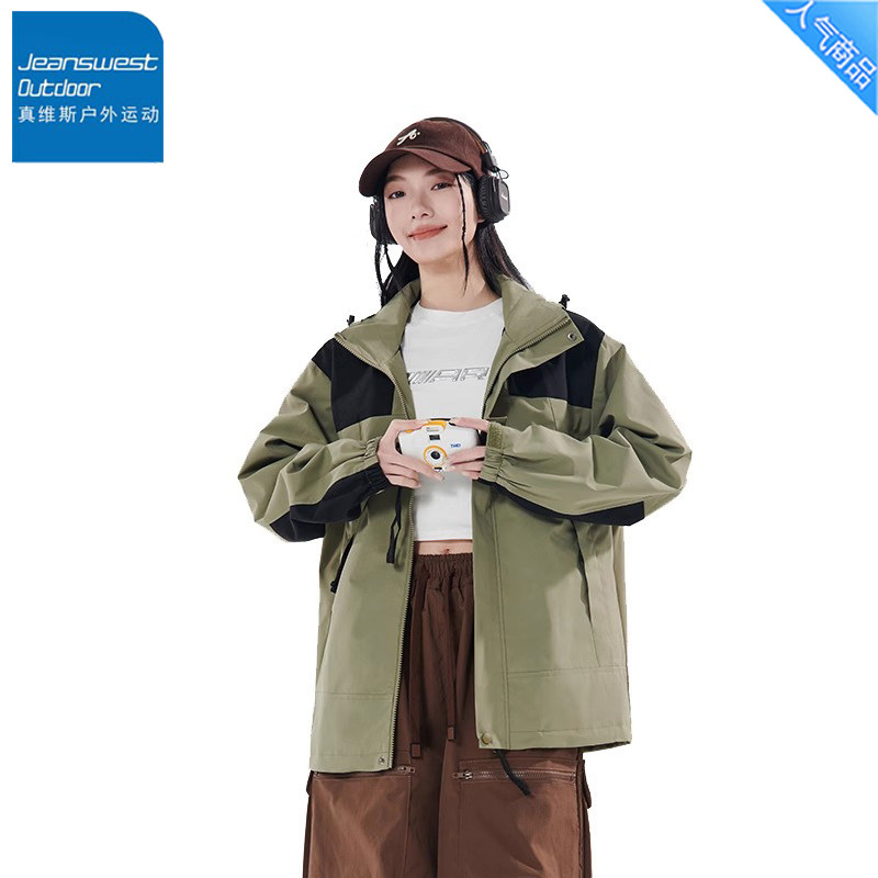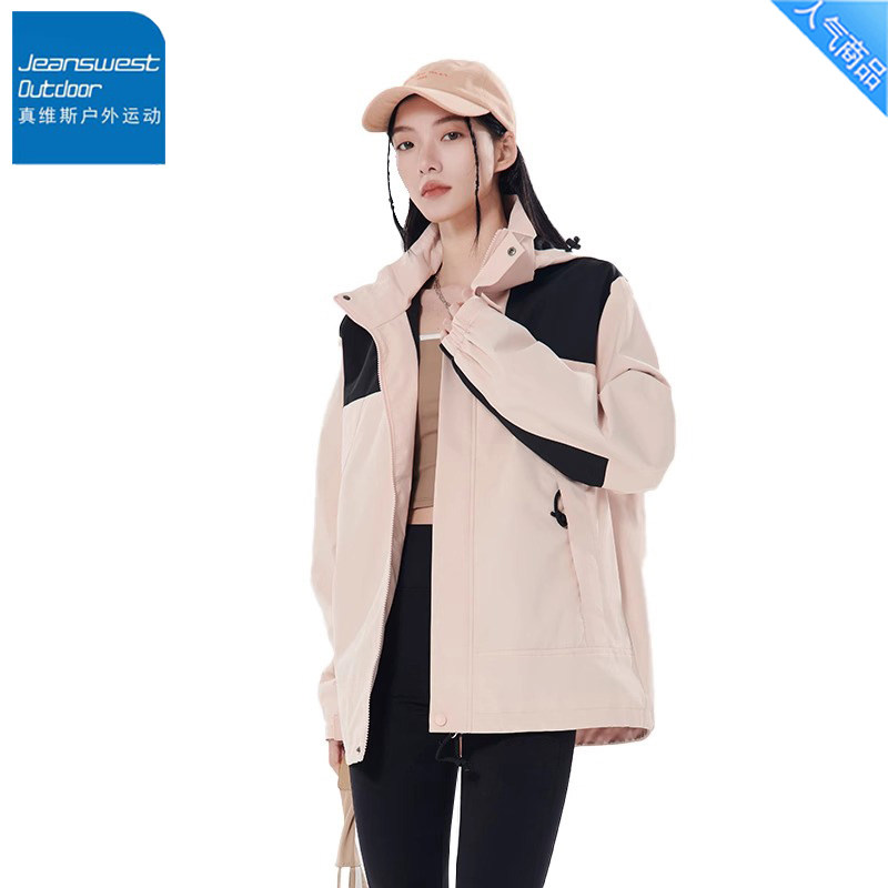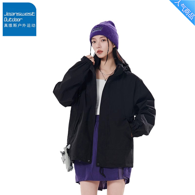真维斯户外运动冲锋衣女款2025新款春秋登山服夹克连帽外套情侣款
