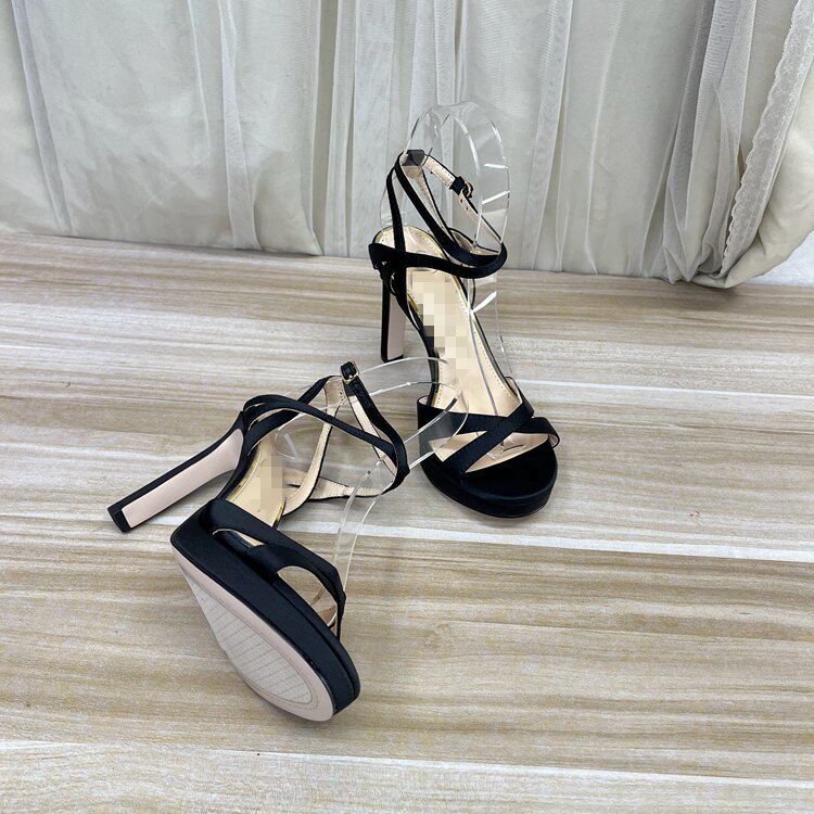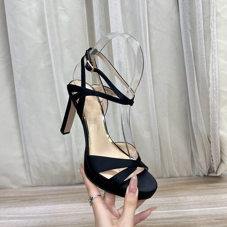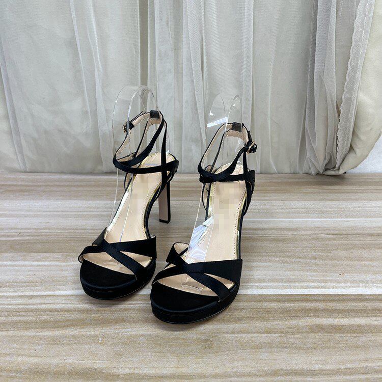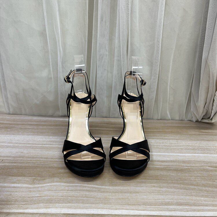 Lady Shoes 外贸原单女鞋气质时尚圆头纯色厚底细高跟一字扣凉鞋
