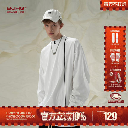 BJHG不计后果新疆棉重磅长袖T恤男款冬季美式纯棉白色打底衫内搭
