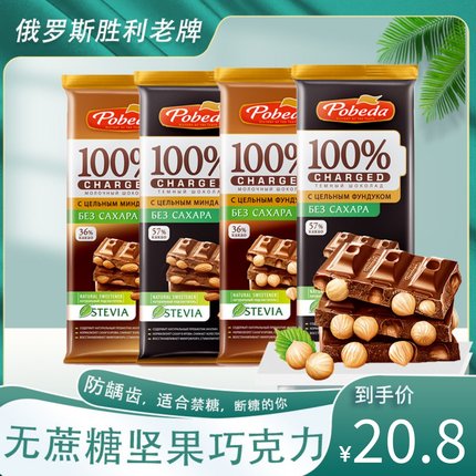 俄罗斯进口胜利榛仁坚果黑巧克力牛奶杏仁夹心麦芽糖醇苦香零食品