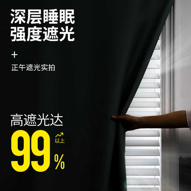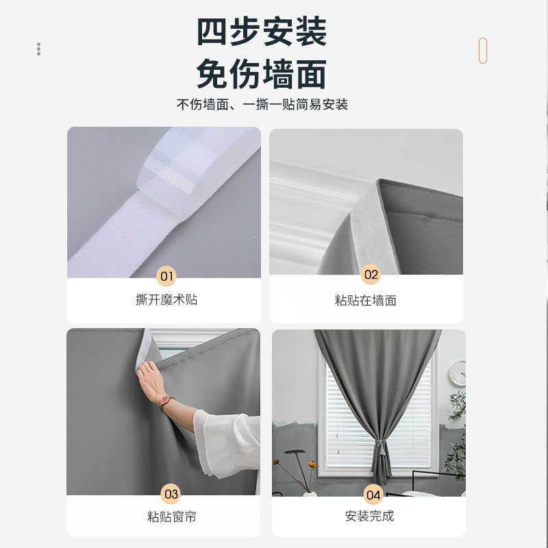 魔术贴全遮光窗帘布免打孔安装短款卧室小自粘贴式简易避遮阳成品