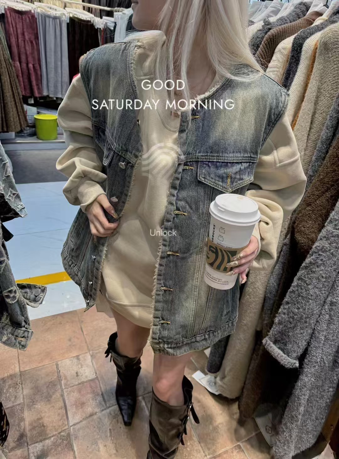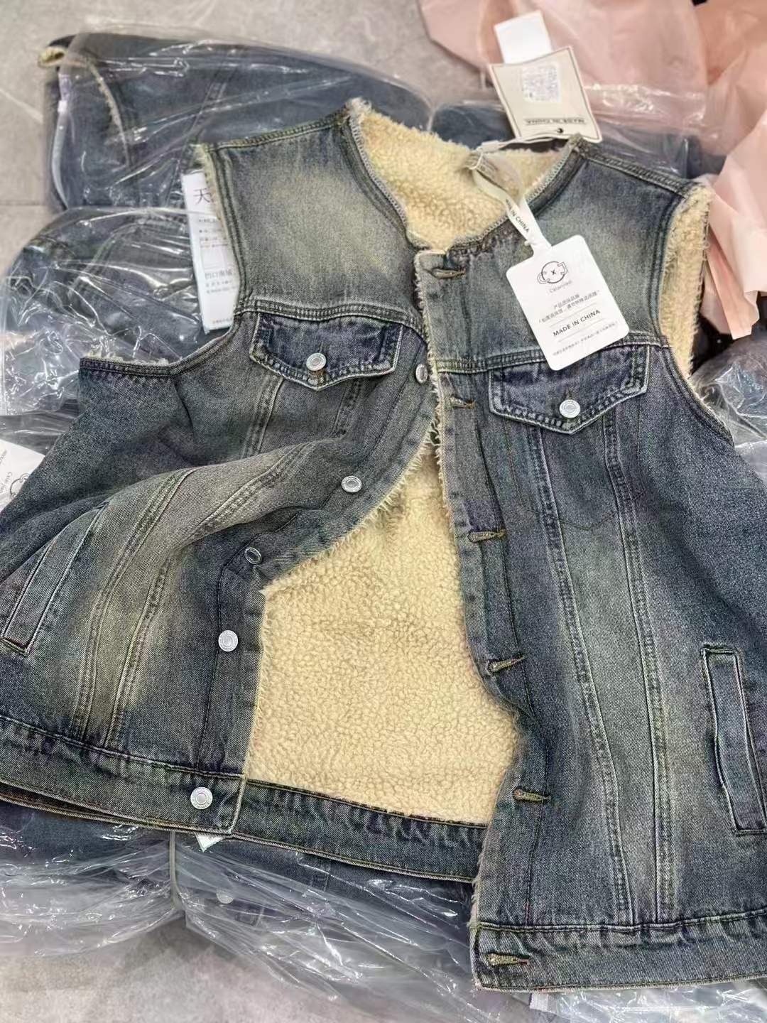 2025秋冬羊羔毛牛仔马甲宽松时尚百搭短款外搭加厚背心外套