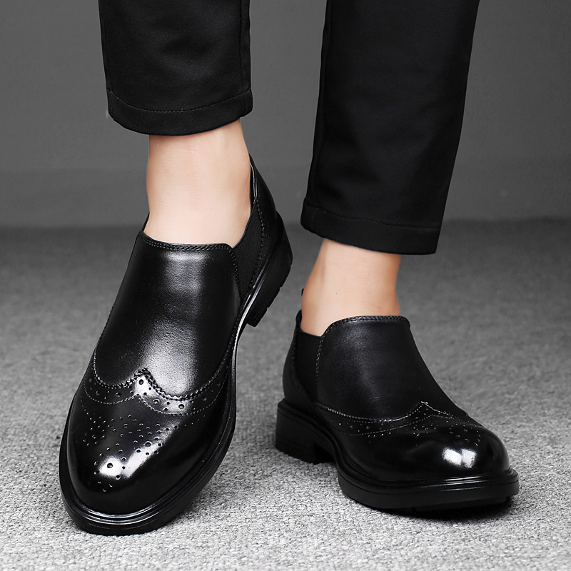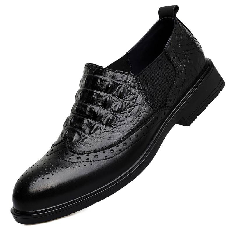 鳄鱼纹皮鞋男头层牛皮商务休闲鞋一脚蹬英伦布洛克雕花真皮正装鞋