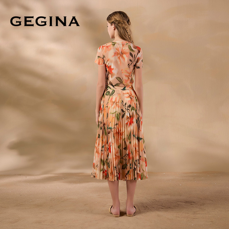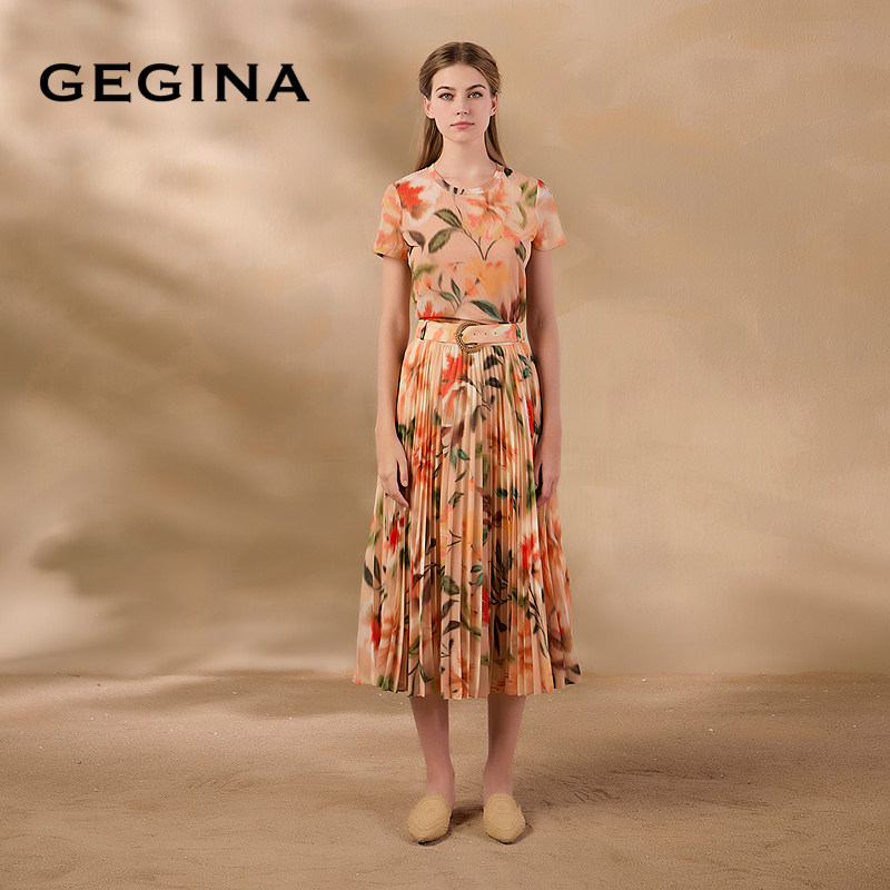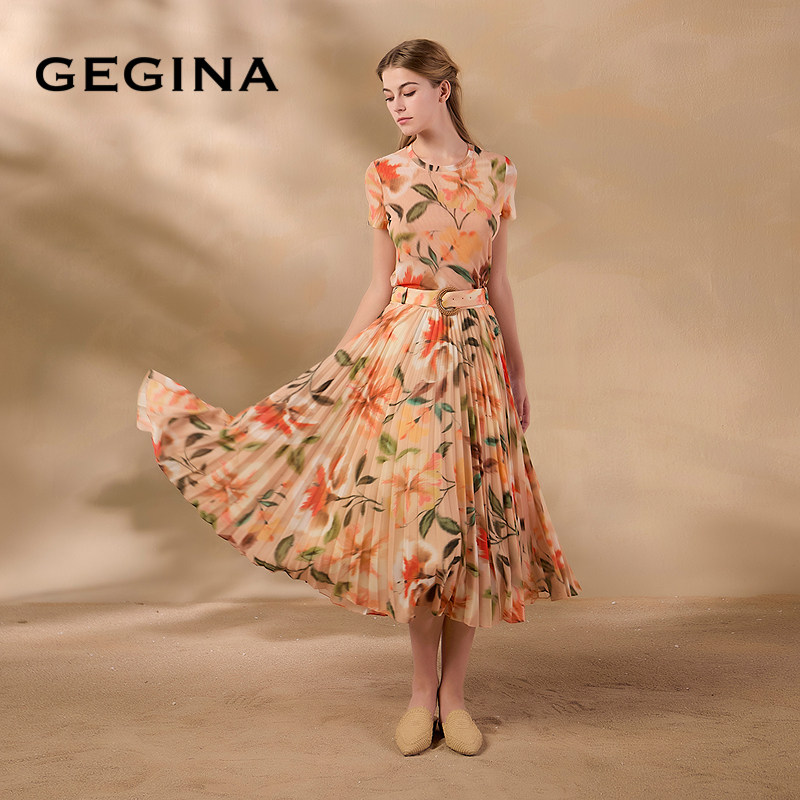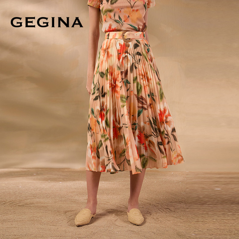 GEGINA吉吉娜夏季新品高腰中长款印花半身裙仙气浪漫时髦裙子