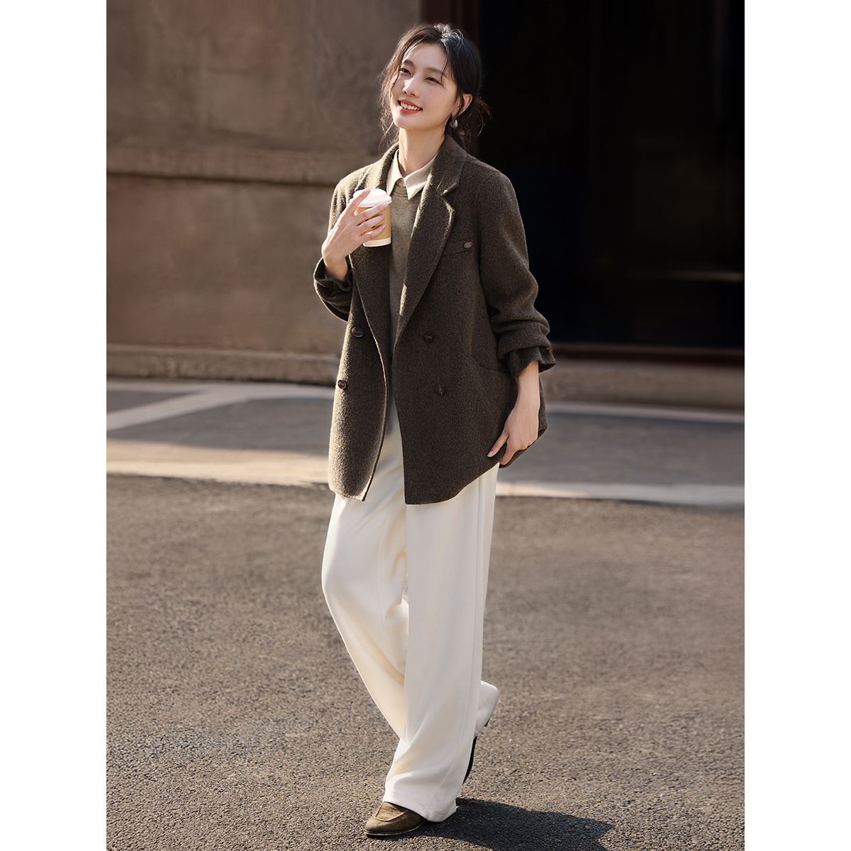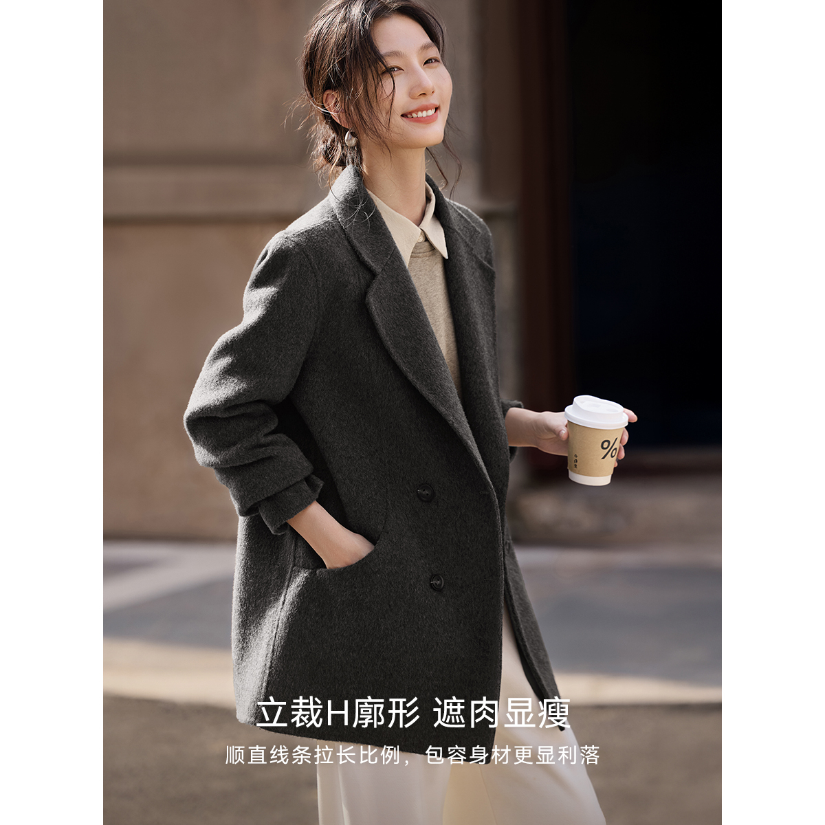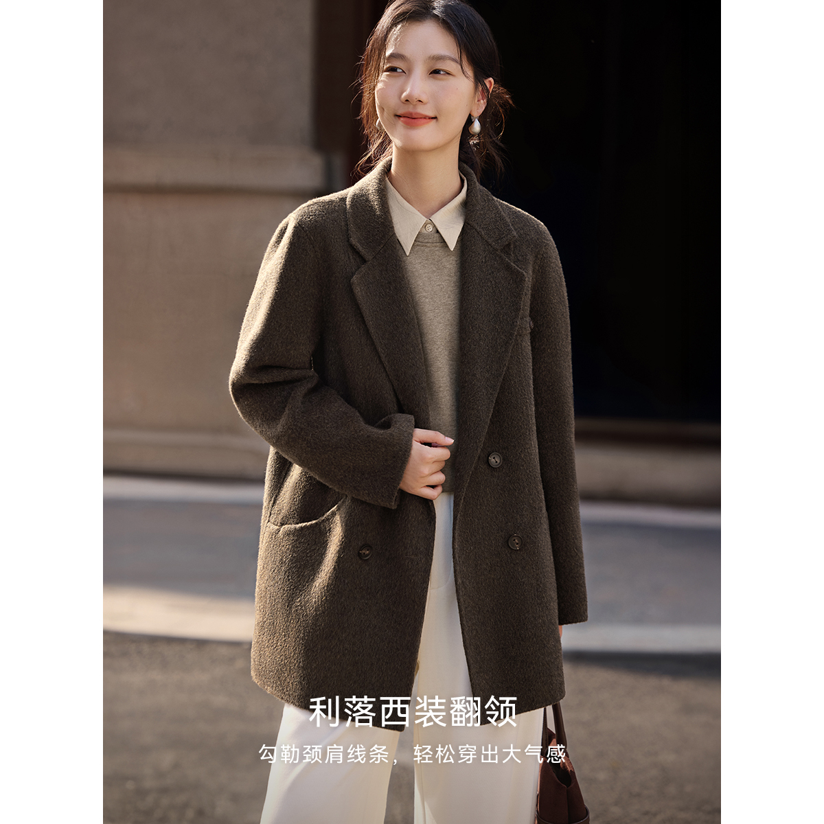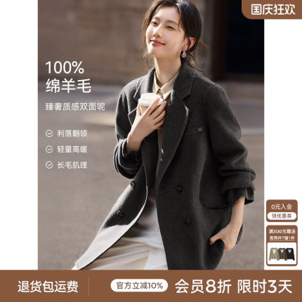 XWI欣未100%全羊毛中长款大衣女秋冬新款正式场合西装式毛呢外套