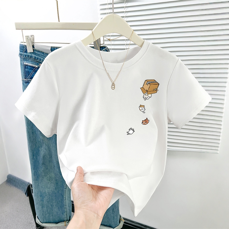 2025新款正肩印花短袖T恤女时尚显瘦小个子百搭圆领夏季半袖上衣
