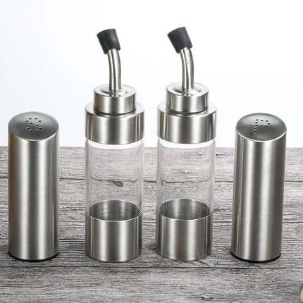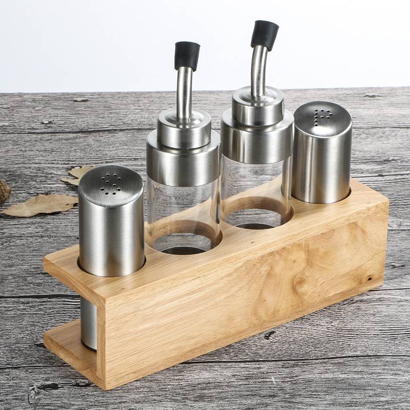 304不锈钢4件套装调料瓶油盐酱醋厨房调味整理用具木座调味罐套装