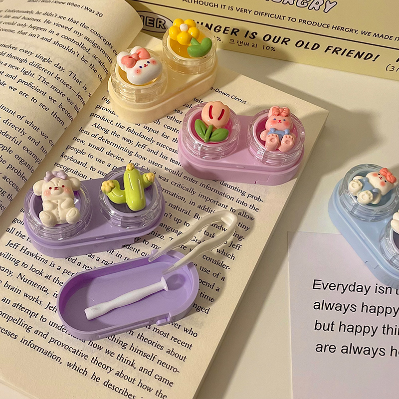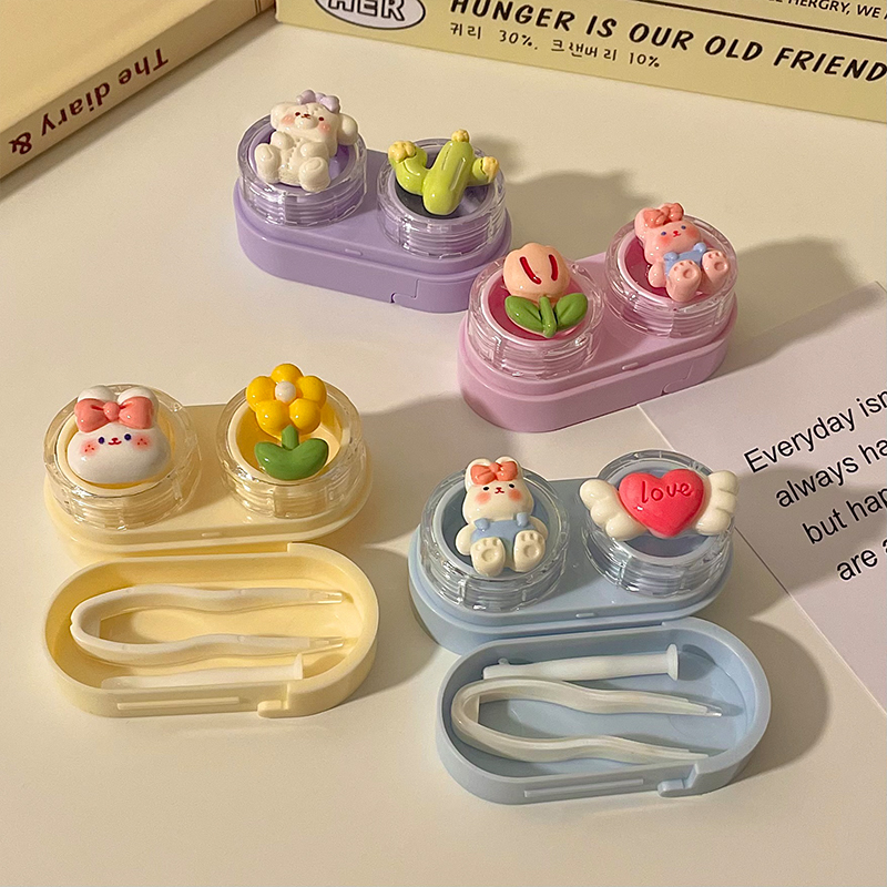 可爱卡通隐形眼镜盒女便携小巧美瞳盒收纳护理盒防漏双联伴侣盒子