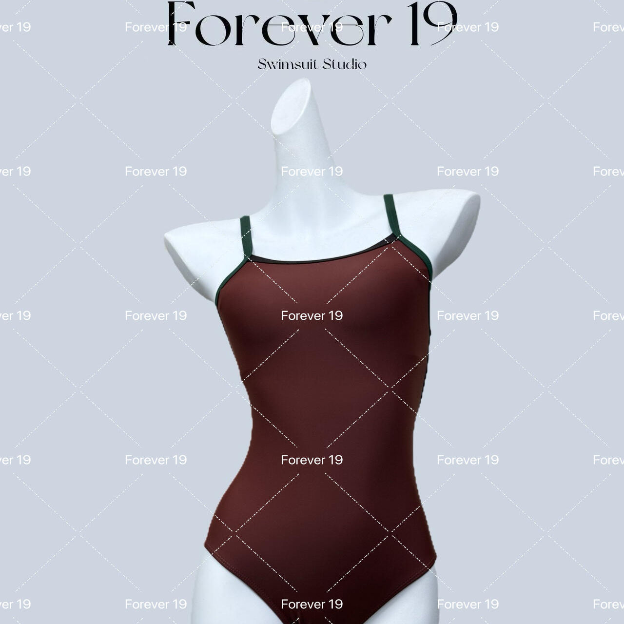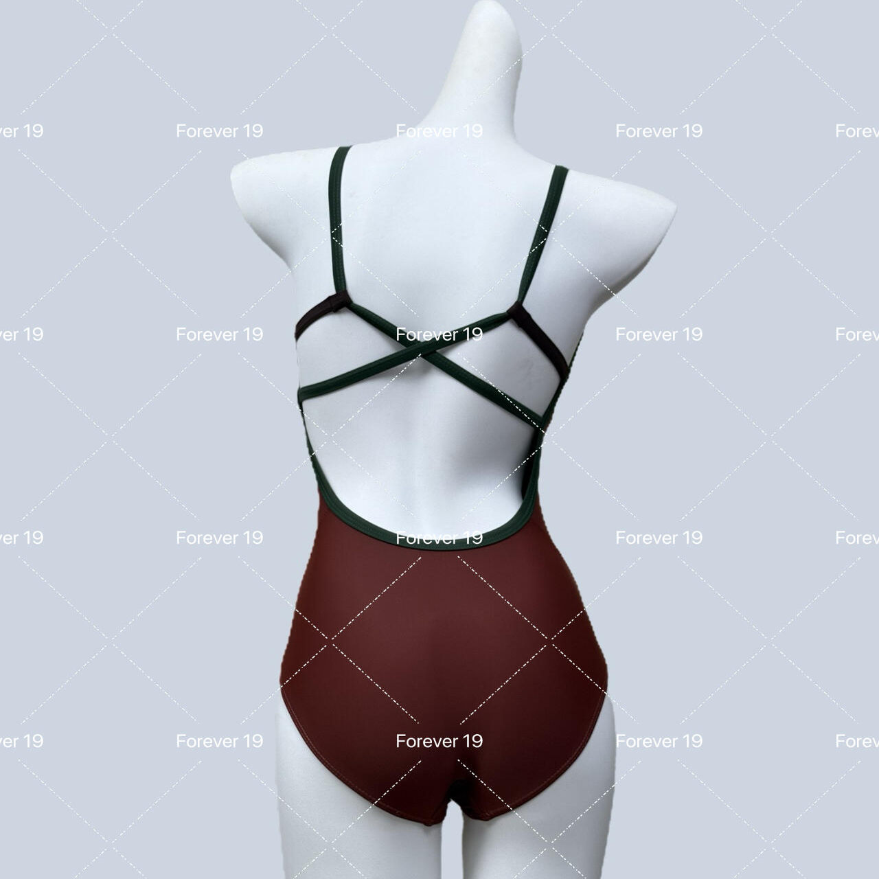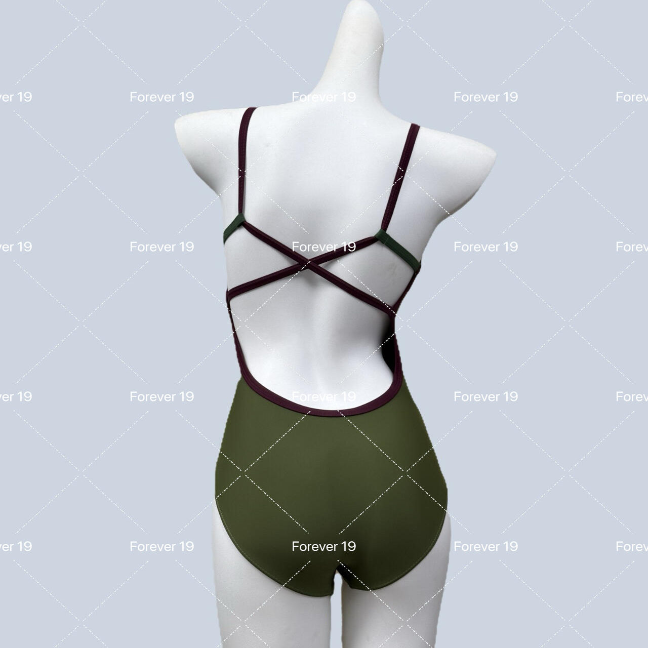 【Forever 19】苔藓绿-竞速泳衣女-低开叉-可拆卸胸垫-显白泡温泉