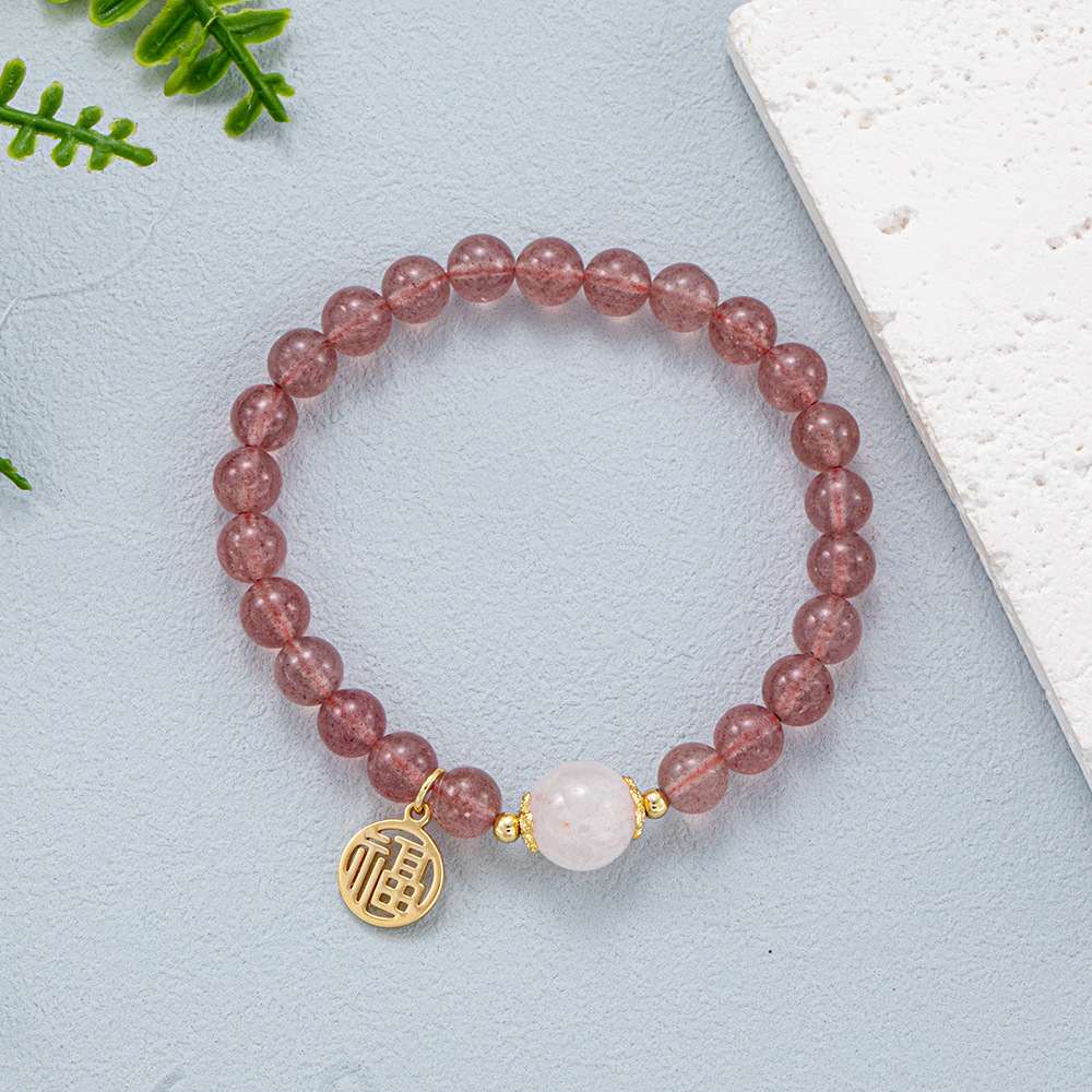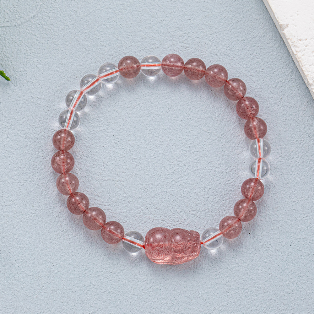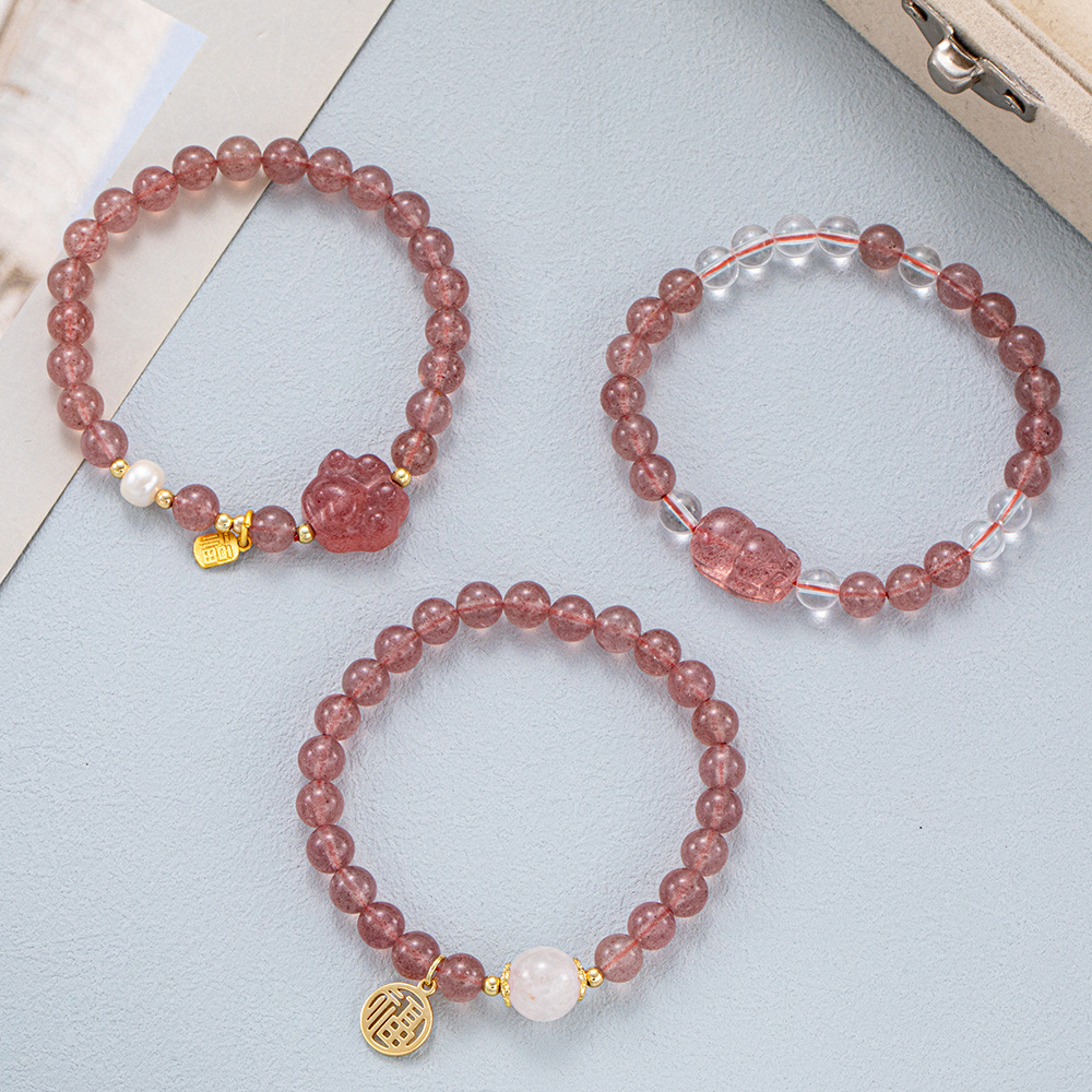 日本品质天然水晶手链草莓晶貔貅招财手串猫爪粉色水晶设计款饰品